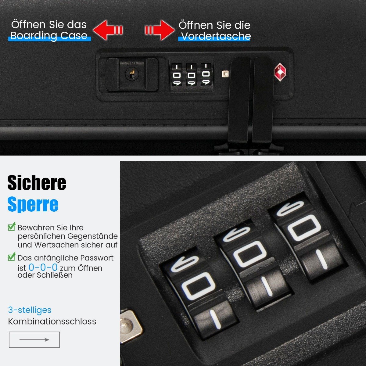 - Saugus TSA spynos užraktas užtikrina jūsų daiktų saugumą.