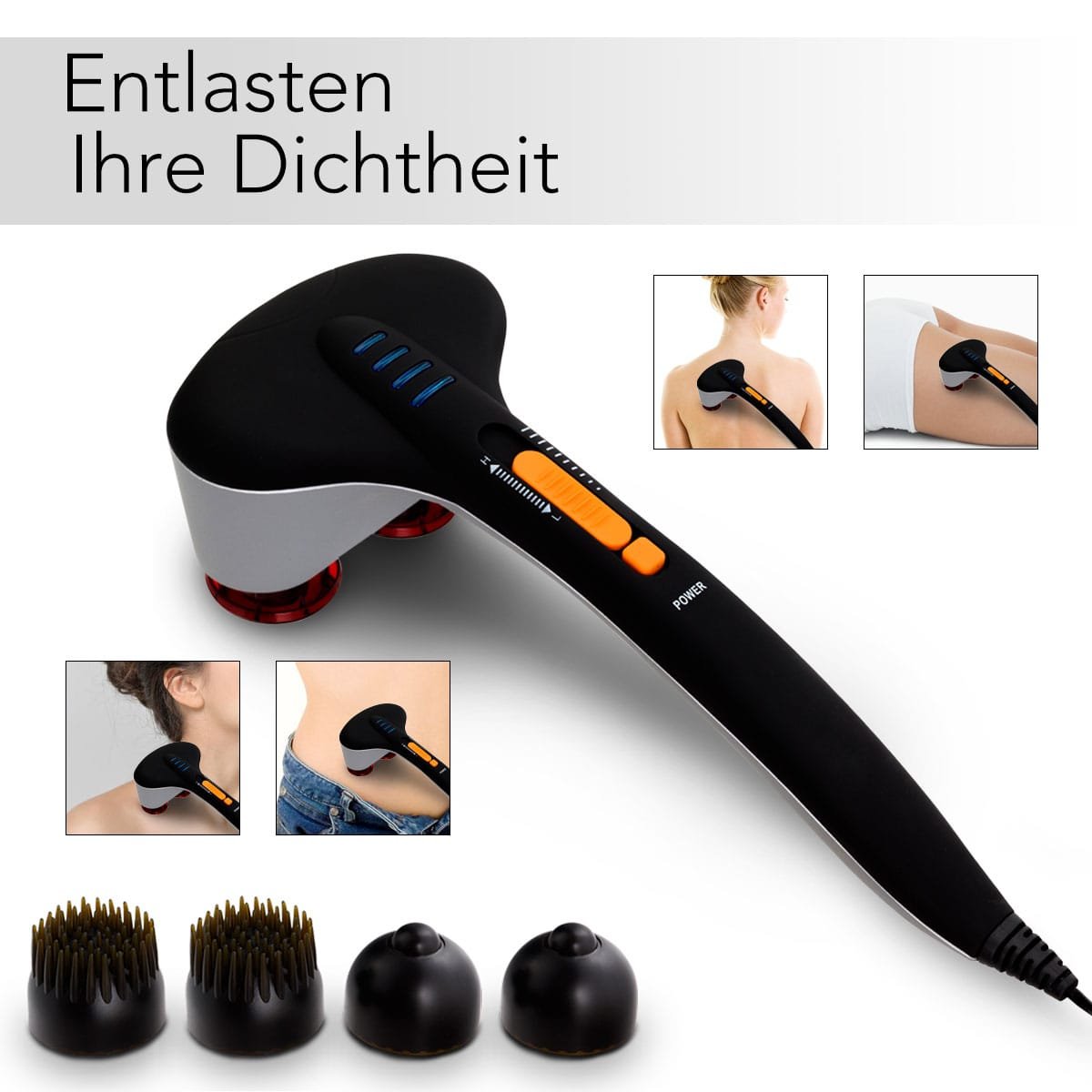 - Dvigubos masažo galvutės su 3 keičiamais antgaliais skirtingiems masažo potyriams.