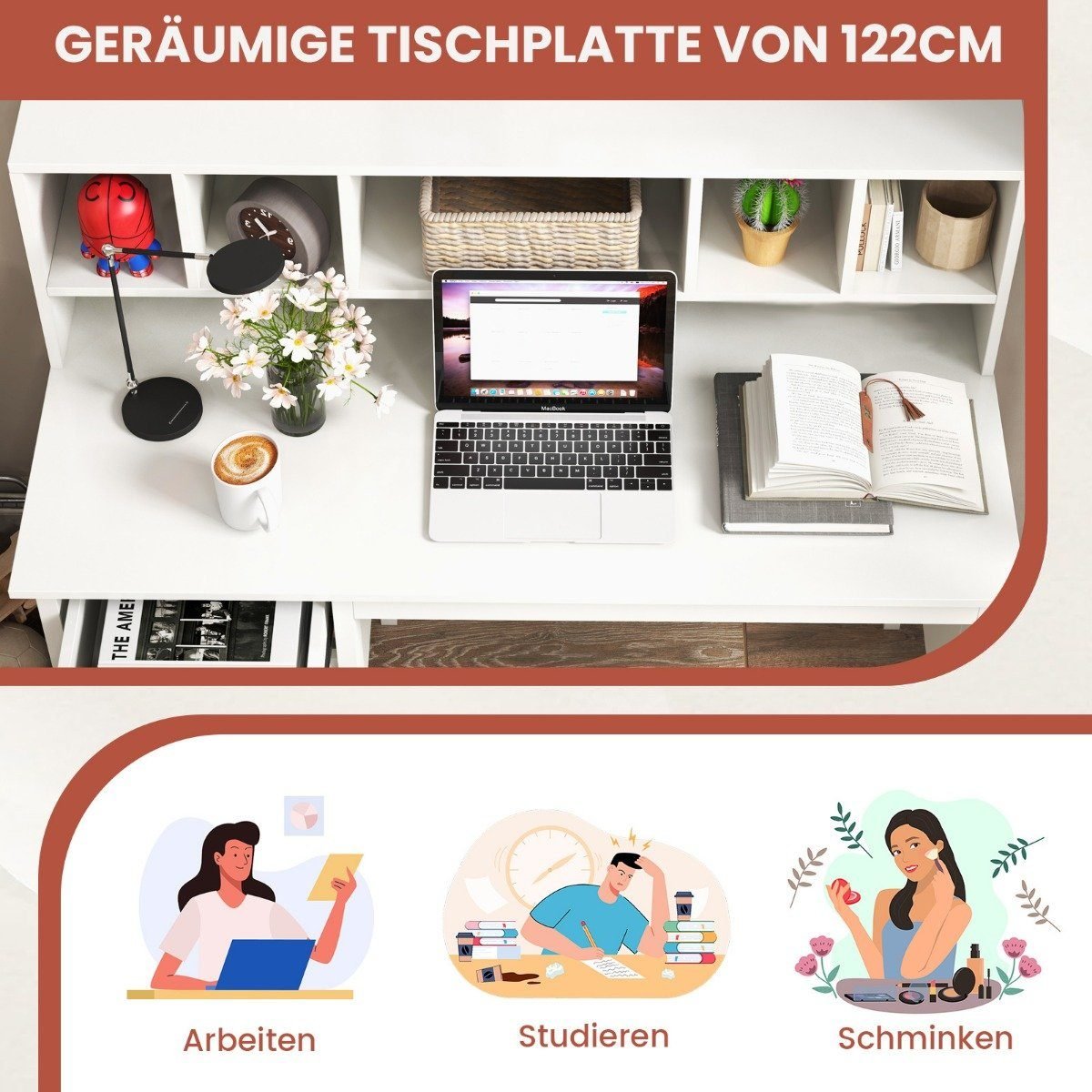 Rašomasis stalas su dviem stalčiais ir penkiomis lentynomis (Balta)