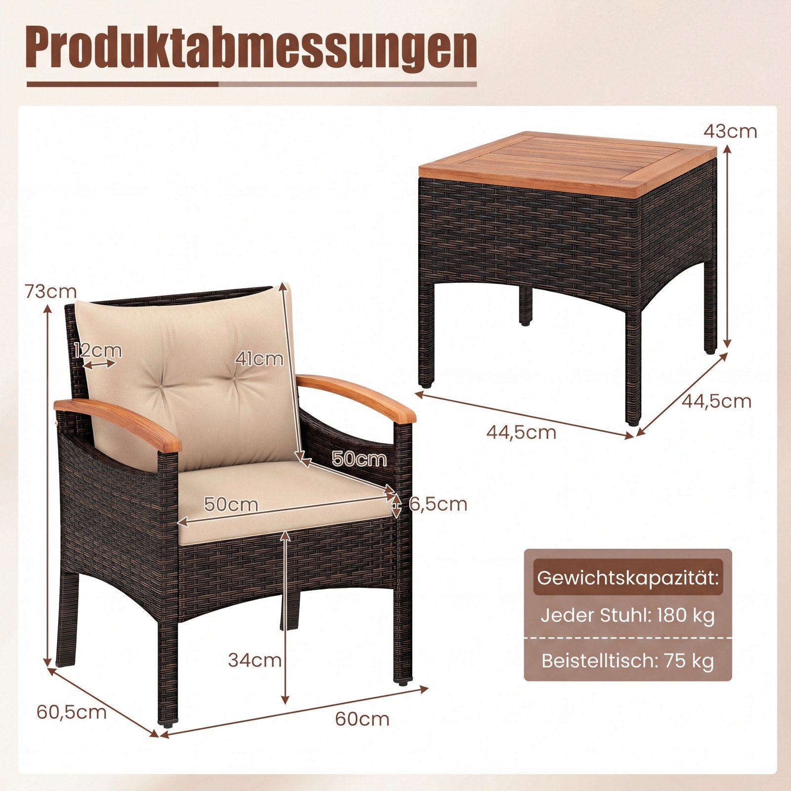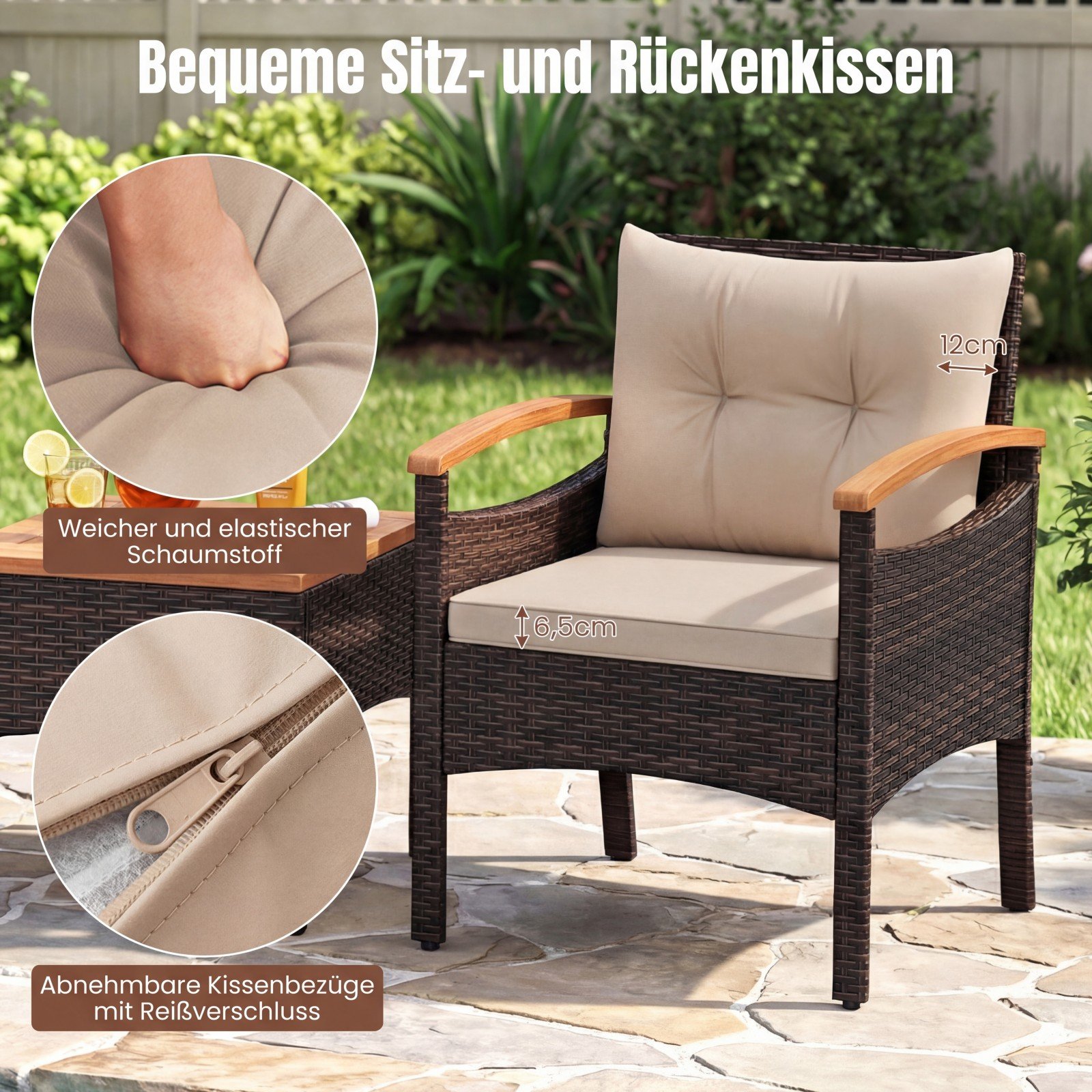 • Medžiaga: Akacijos mediena, PE ratanas, metalas, putplastis, poliesteris