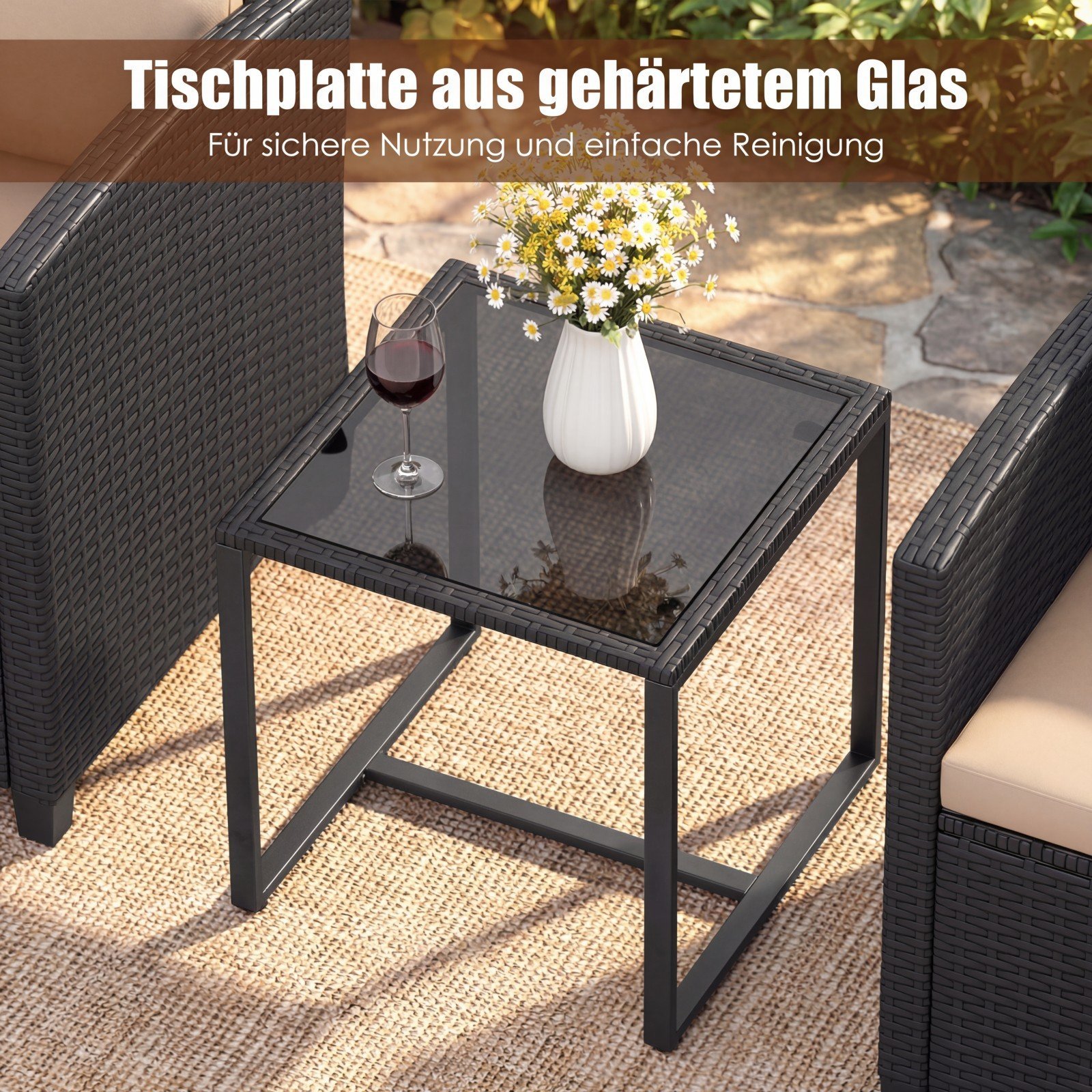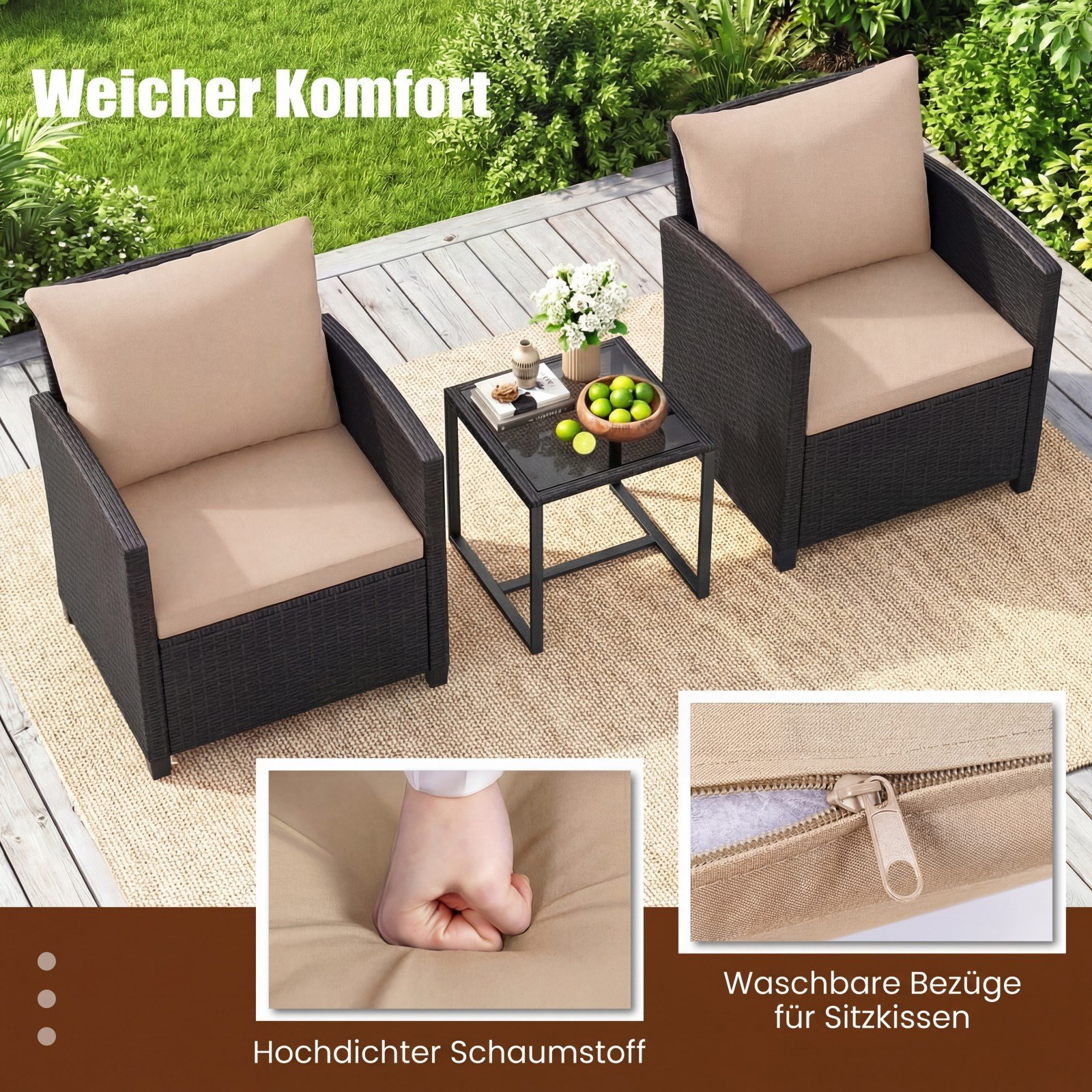 Rataninis lauko baldų komplektas su stiklo staliuku ir minkštomis pagalvėlėmis (Chaki)