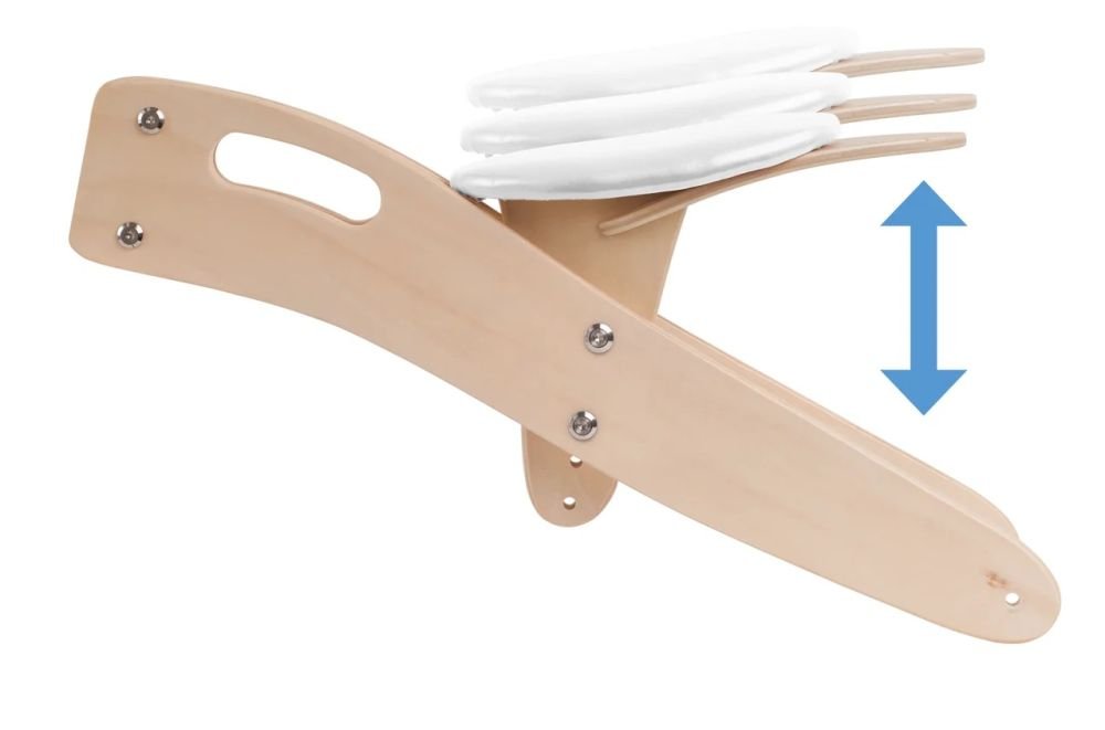 Sėdynės aukštis nuo žemės: 38 cm (reguliuojamas, galima pakelti 5 cm, maksimalus aukštis – 43 cm).
