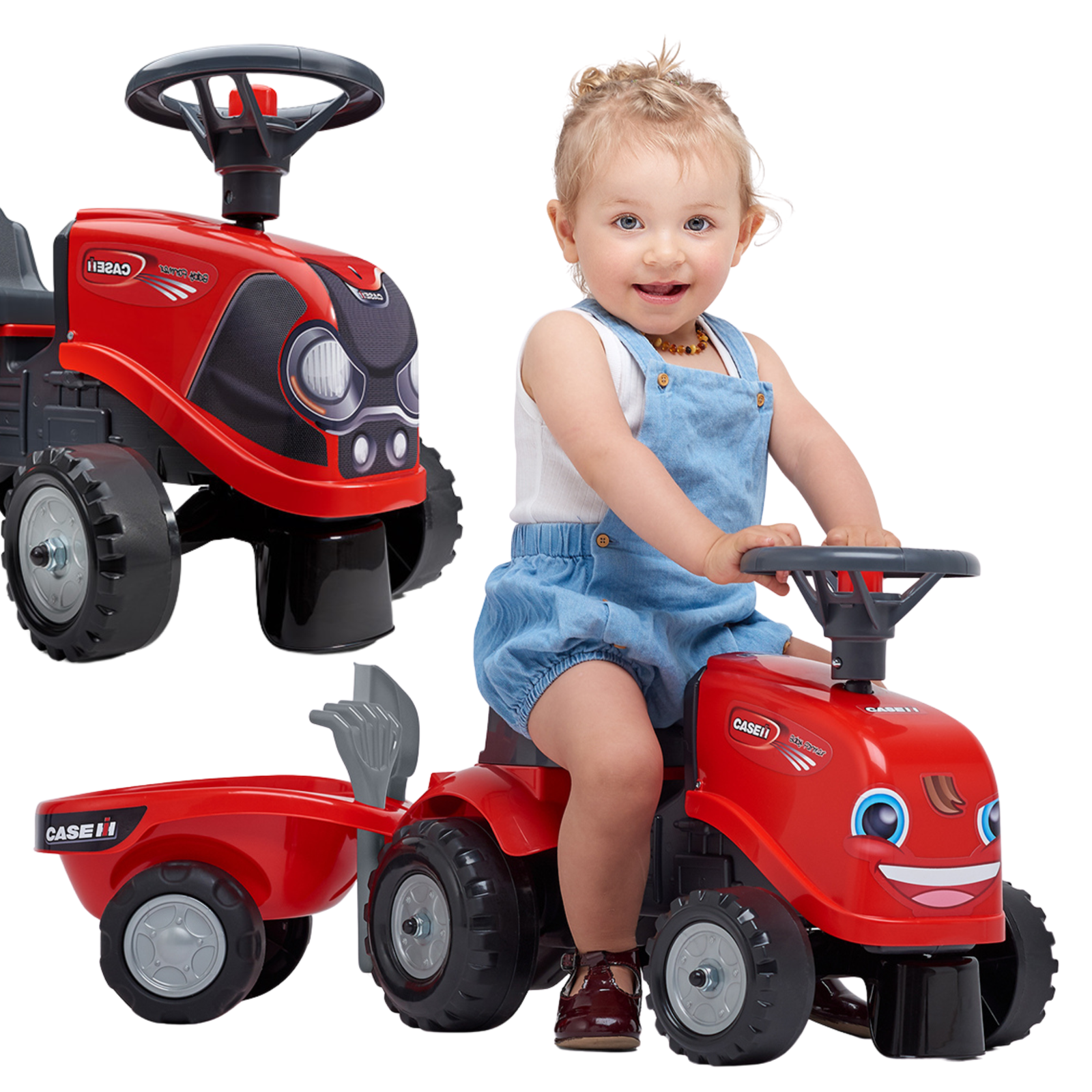 Šis FALK „Baby CASE IH“ stumiamasis traktorius su priekaba yra sukurtas mažiesiems traktorininkams. Žaislas pagamintas kruopščiai, skiriant dėmesį smulkiausioms detalėms. Gamybai naudotas aukštos kokybės plastikas, tinkantis vaikams nuo 12 mėnesių.
