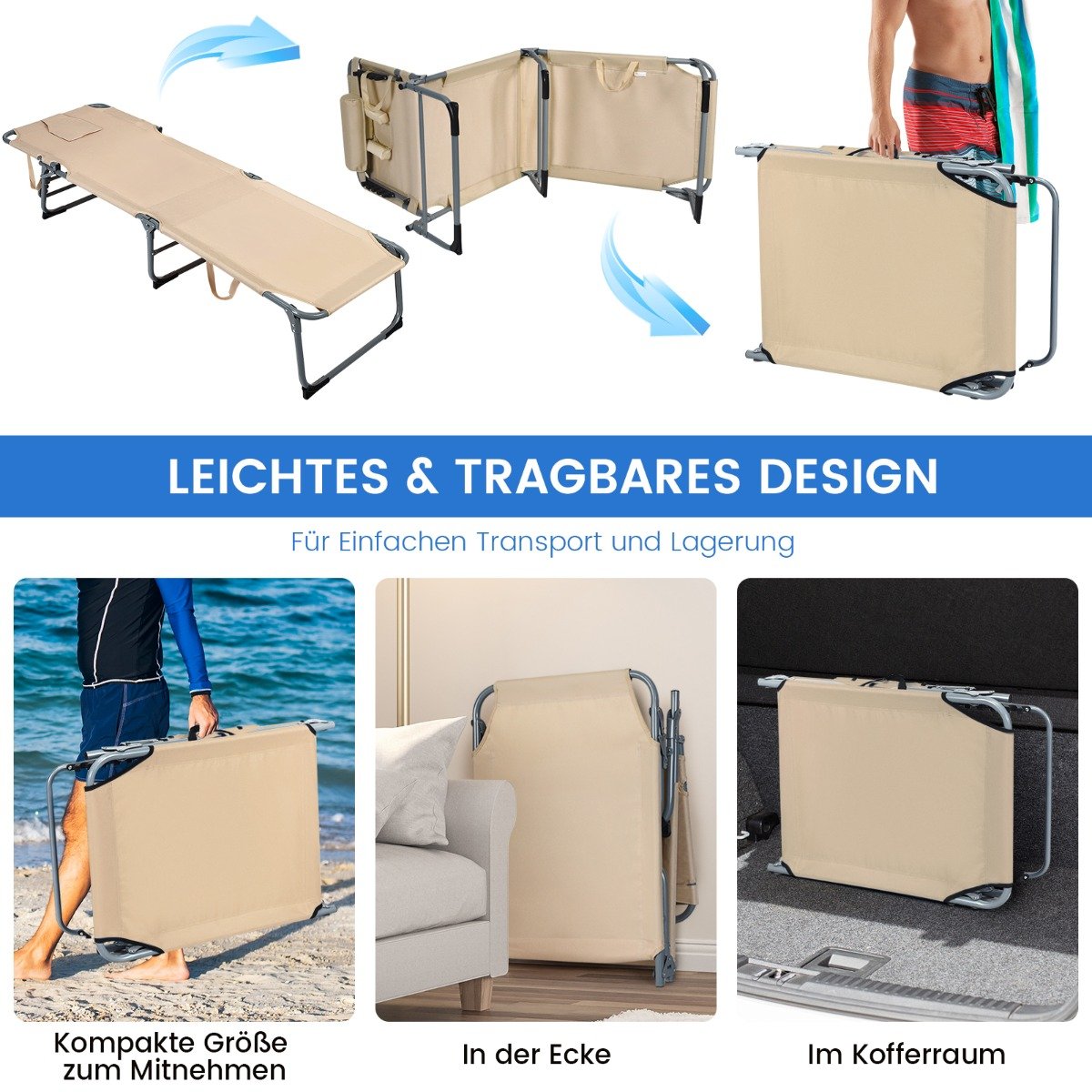 Reguliuojama sulankstoma lauko gultuvė su paminkštinimu (Smėlio)