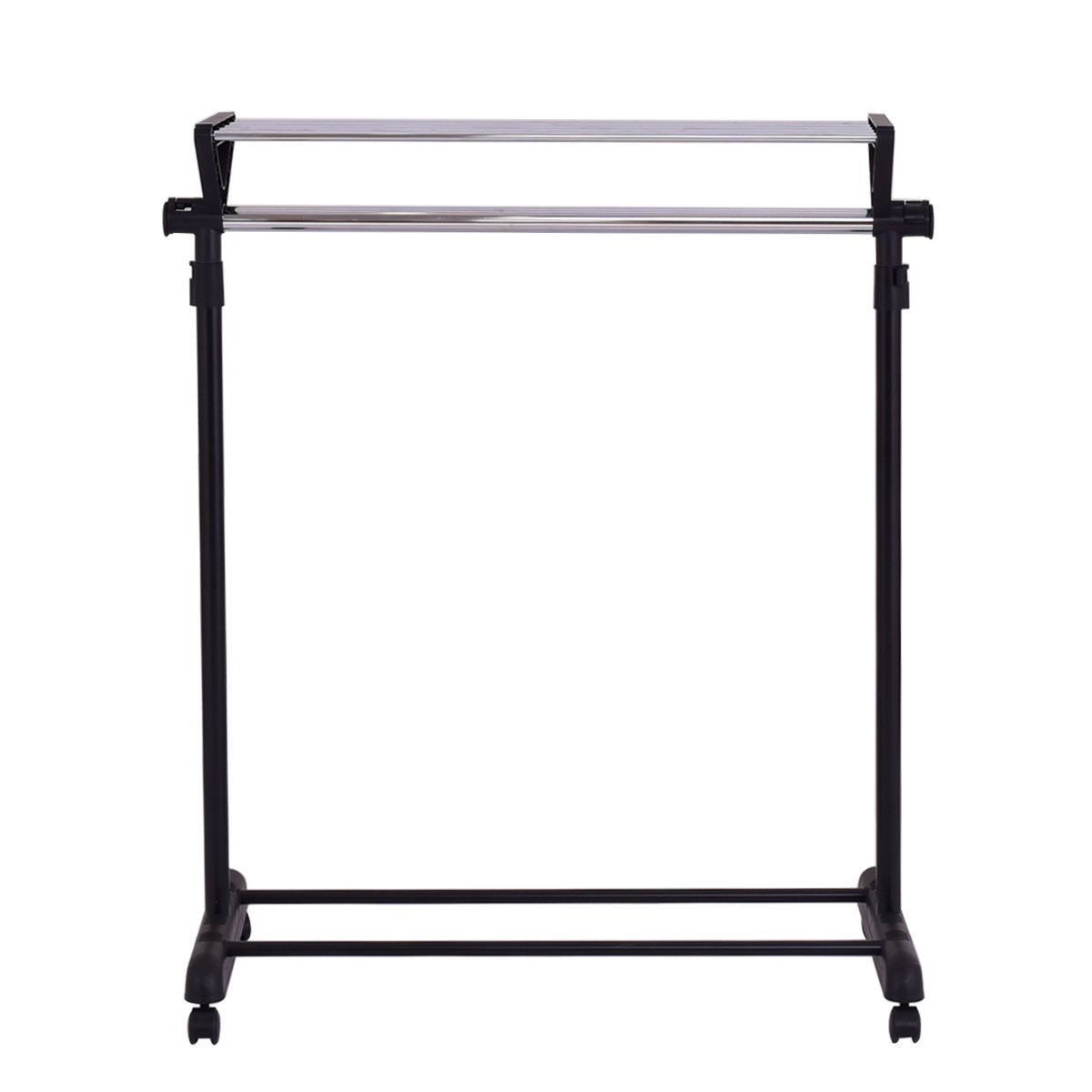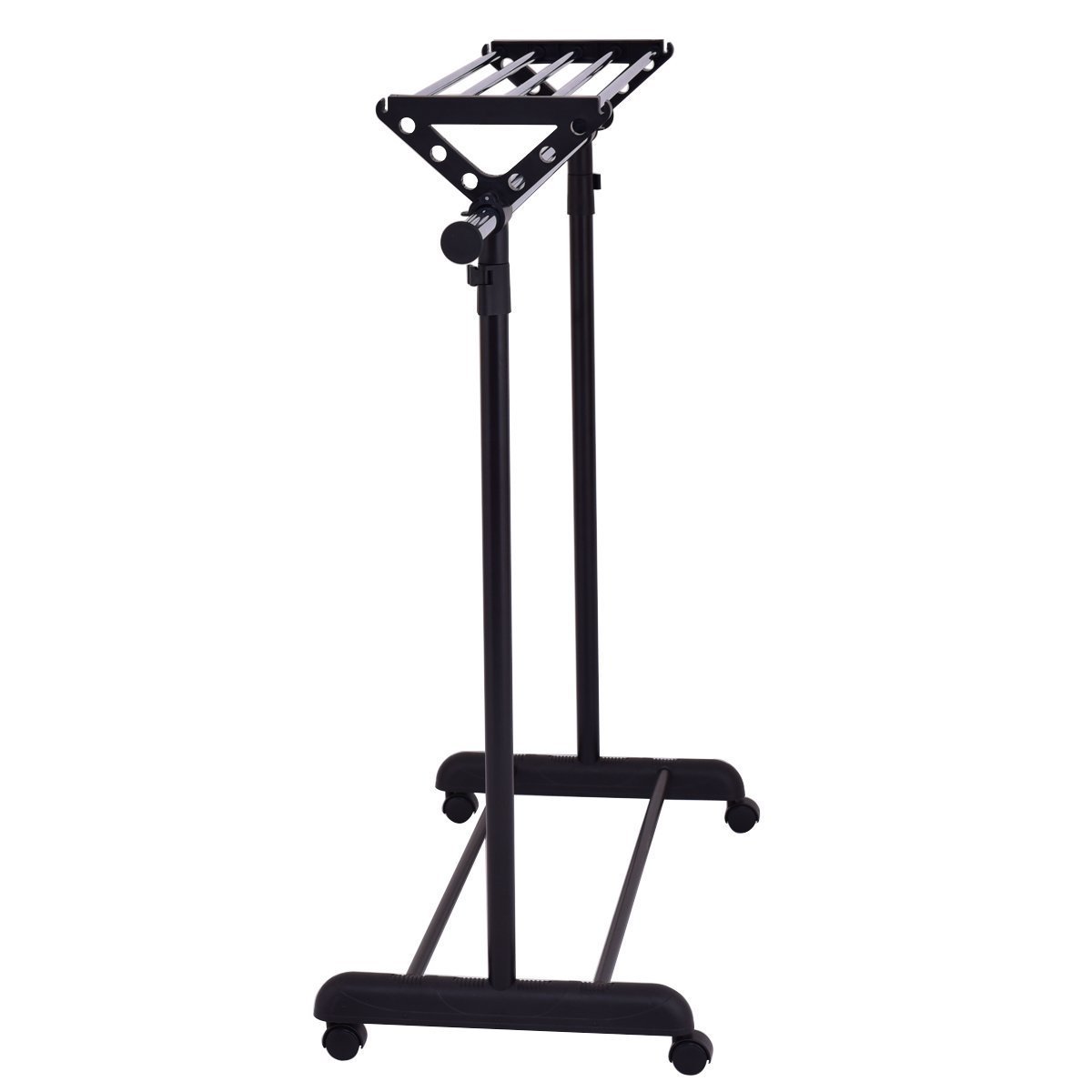 Reguliuojamas drabužių stovas su papildoma saugojimo vieta (Juoda ir sidabrinė)