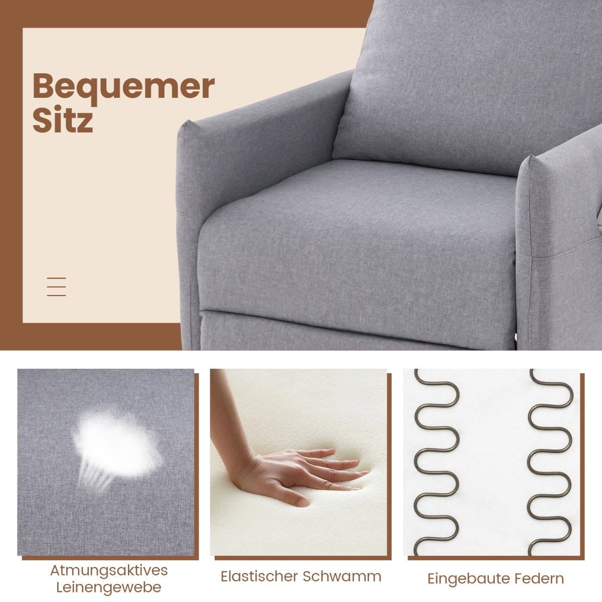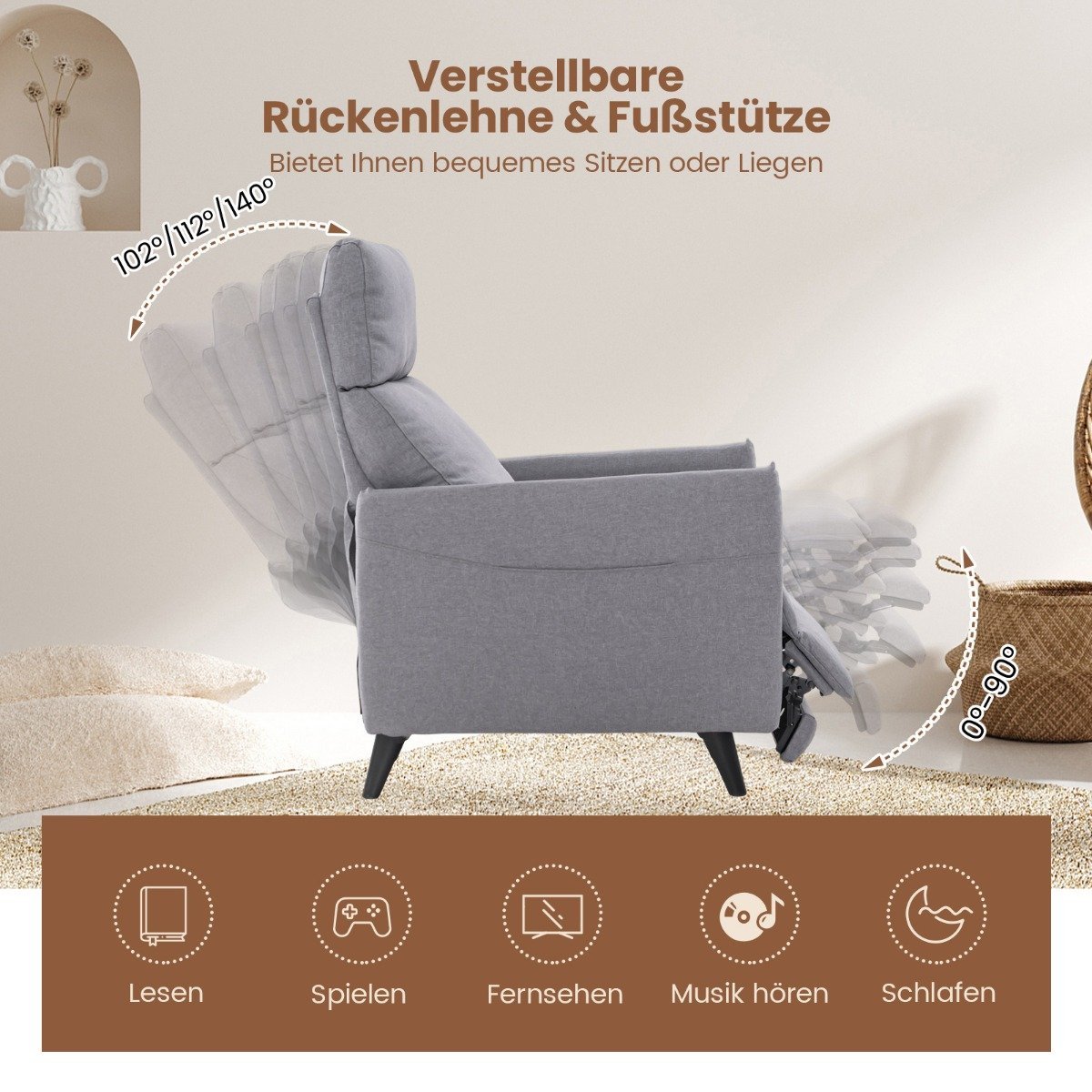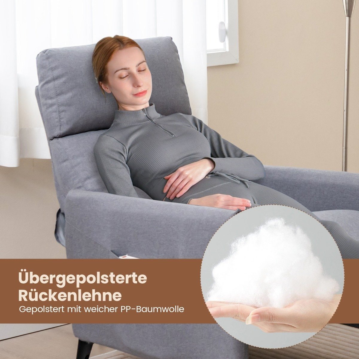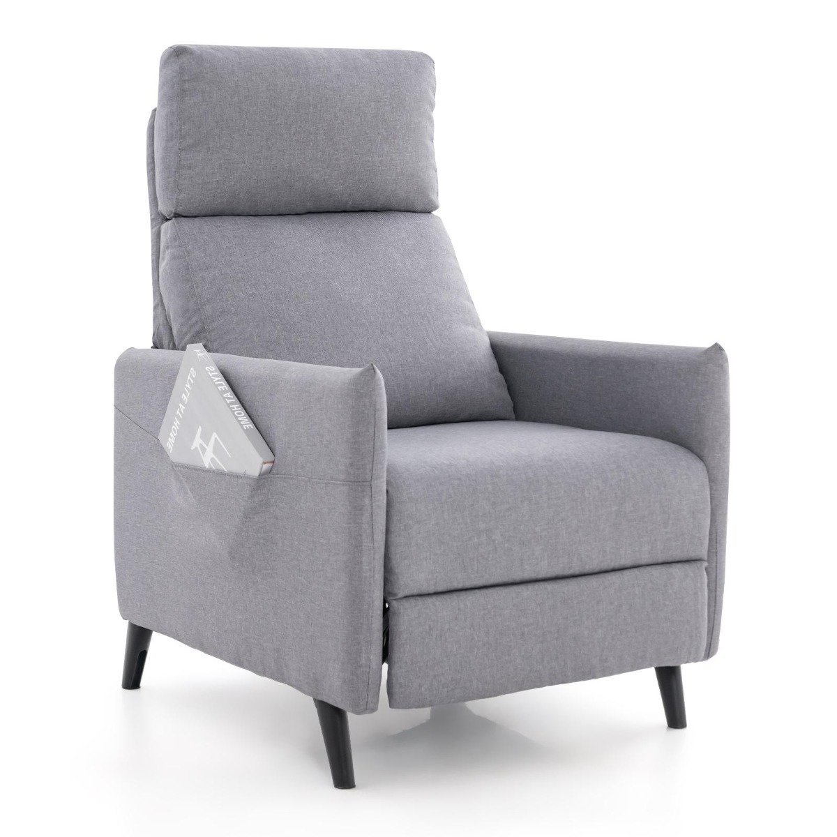 Reguliuojamas fotelis su kojų atrama ir laikymo kišenėmis (Pilka)