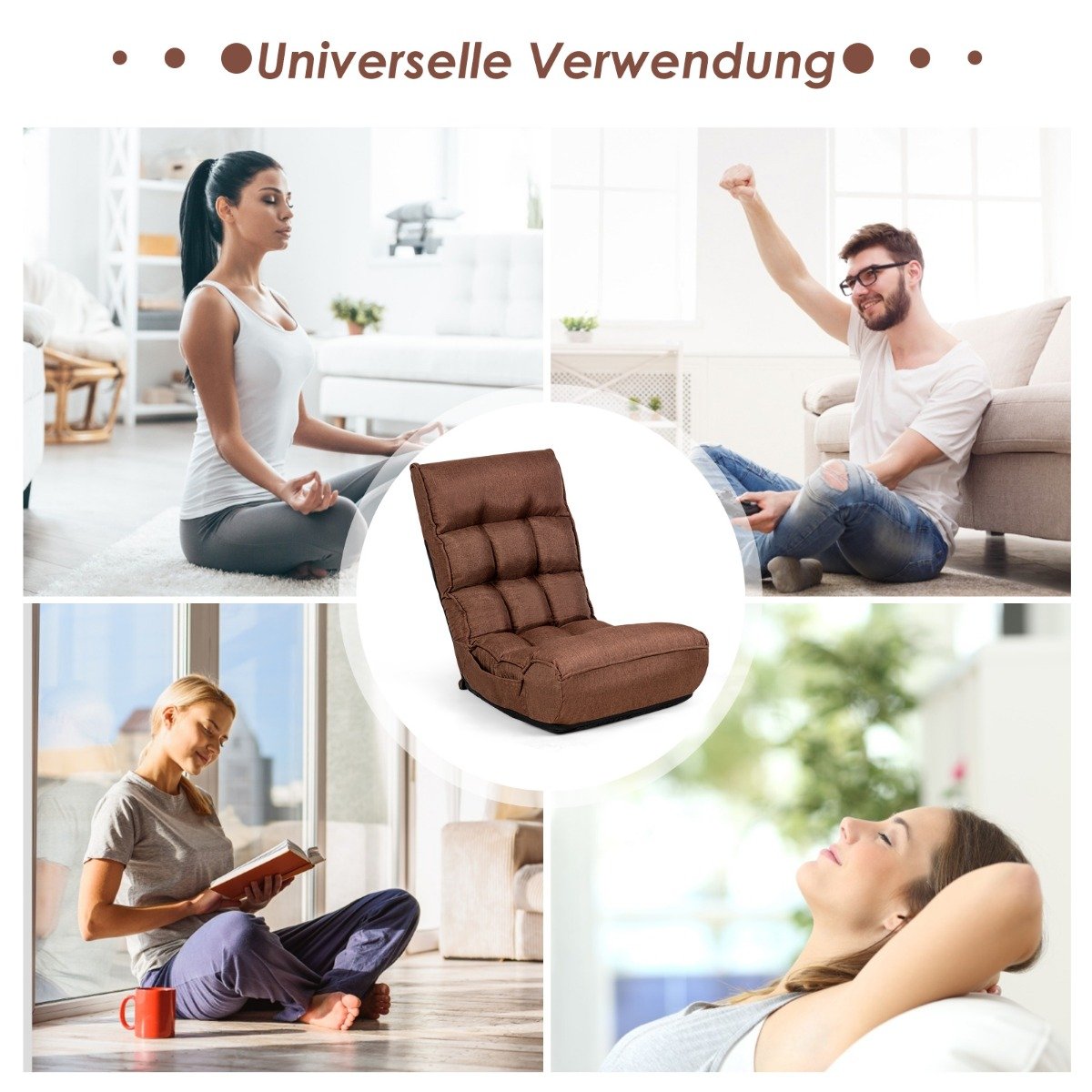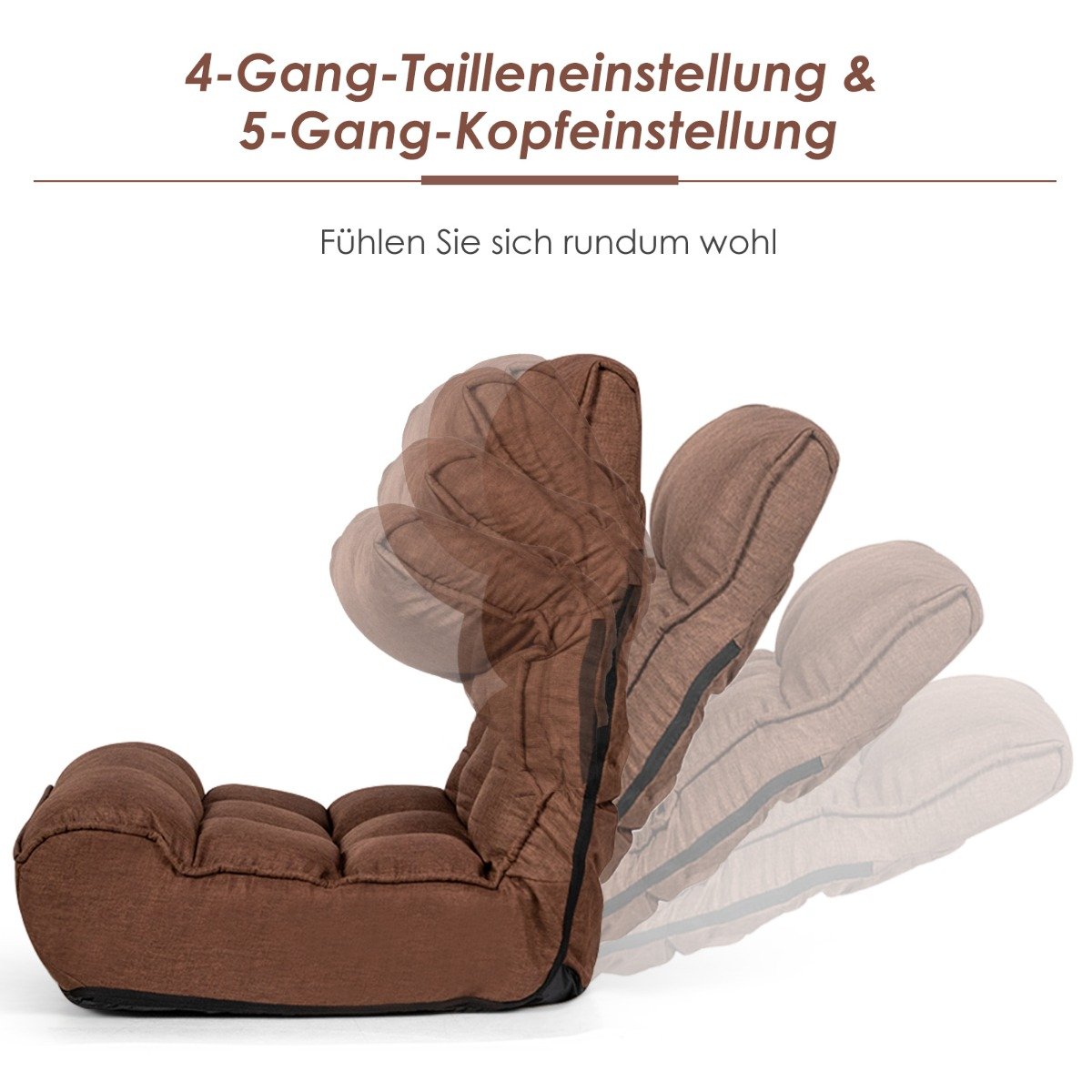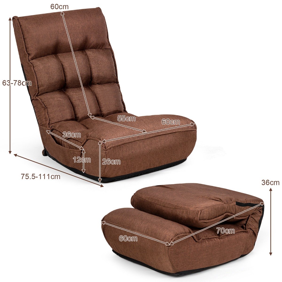 Reguliuojamas sulankstomas grindų fotelis su atlošu (Ruda)