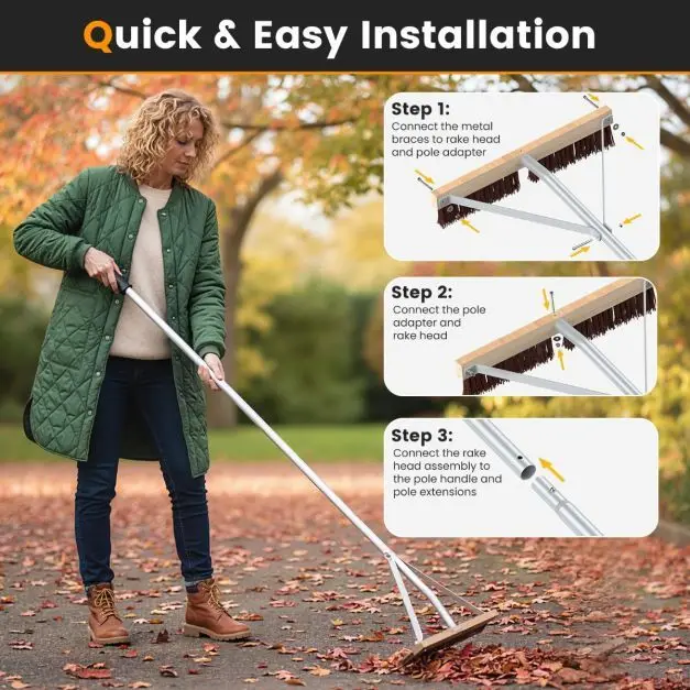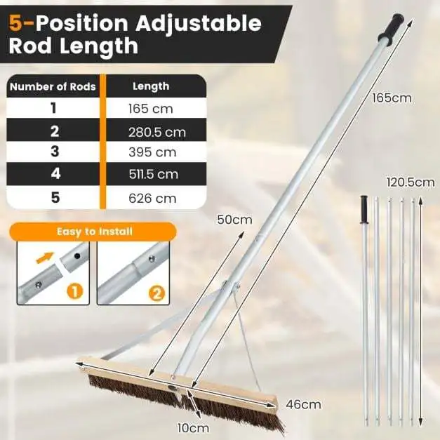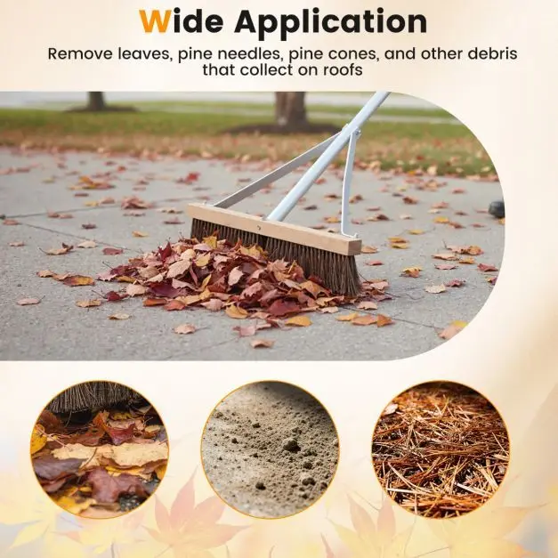 - Universalus naudojimas: efektyviai šalina lapus, spyglius, kankorėžius, šakas ir kitas šiukšles nuo gyvenamųjų namų ir sodo namelių stogų.