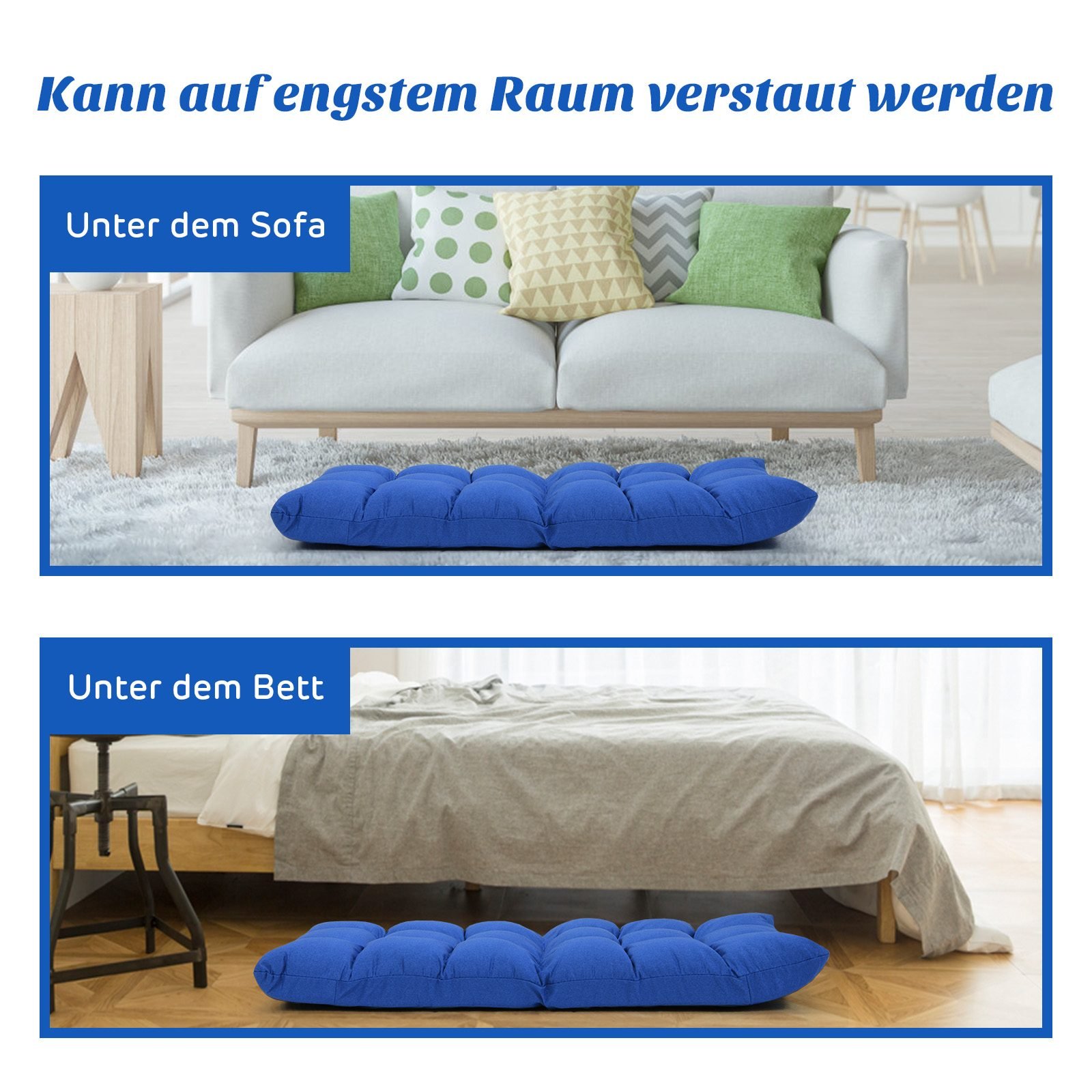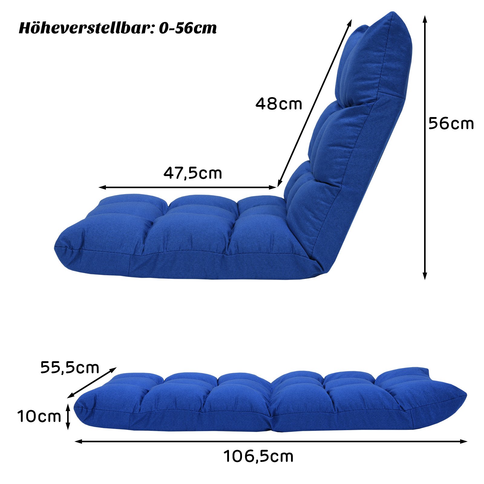 Reguliuojamo atlošo grindų kėdė su patogiu užpildu (Mėlyna)