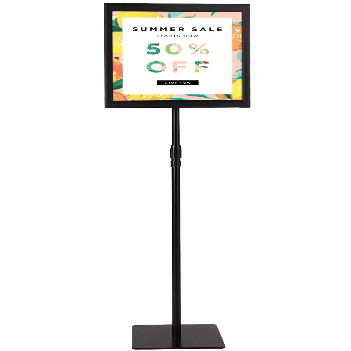 Šis profesionalus ir funkcionalus informacinis stendas idealiai tinka reklamai ir informacijos pateikimui viešosiose vietose. Pagamintas iš tvirto aliuminio rėmo ir nerūdijančio plieno stovo, jis yra patvarus ir ilgaamžis. Paprastai ir efektyviai reklamuokite savo akcijas ar pasiūlymus su šiuo universaliu stendu.
