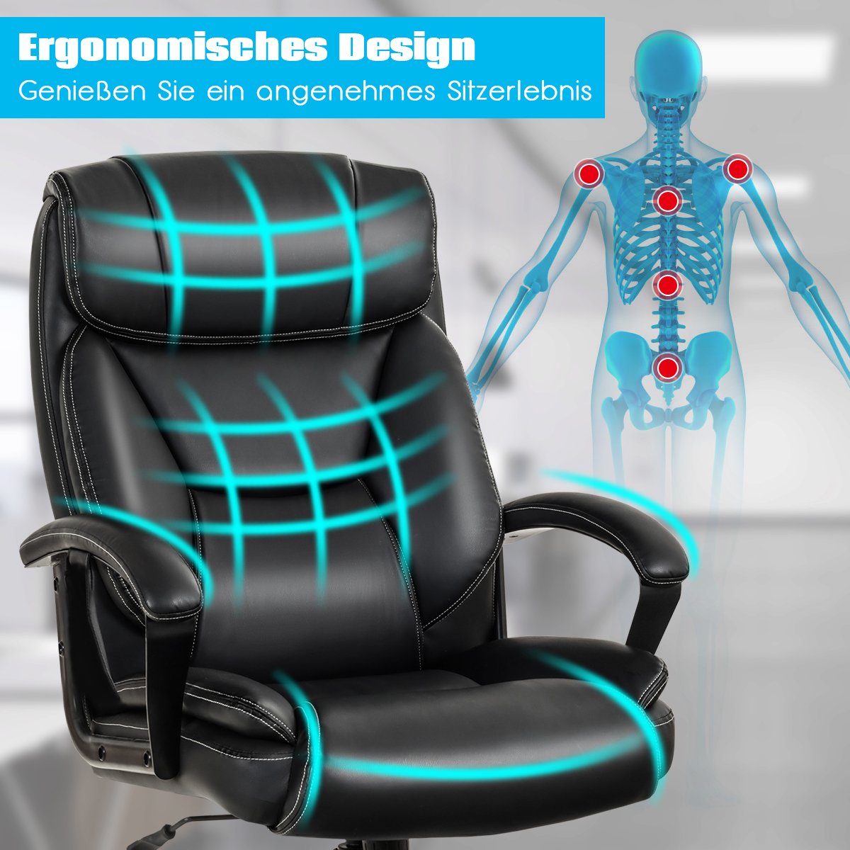 - Ergonomiškas dizainas malšina viso kūno nuovargį.