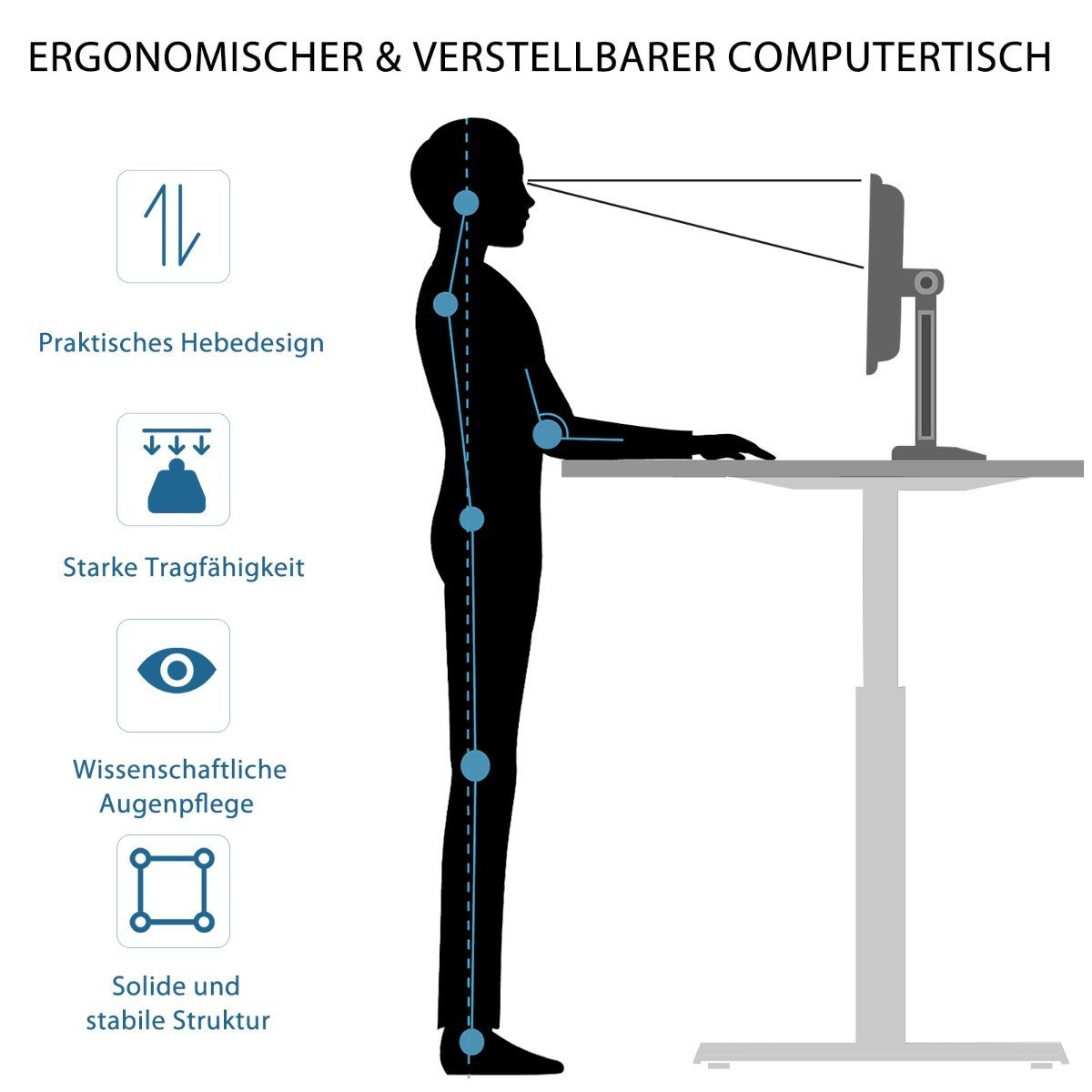 - Reguliuojamas aukštis: lengvai pritaikykite stalą nuo 75 cm iki 113 cm, kad rastumėte optimalią darbo padėtį.