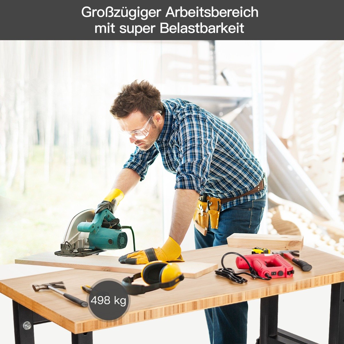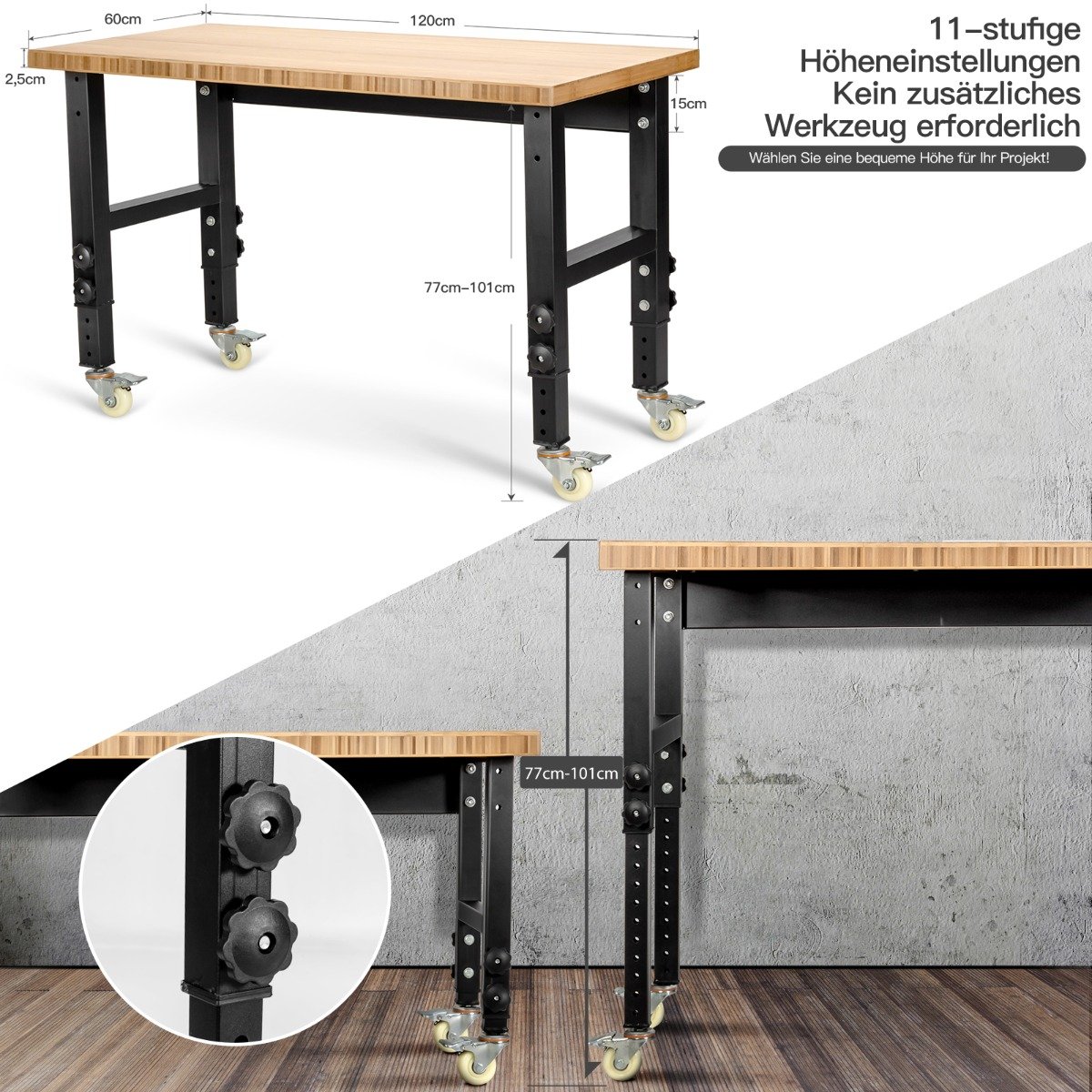 Šis tvirtas darbinis stalas – puikus pasirinkimas jūsų dirbtuvėms, garažui ar parduotuvei. Pagamintas iš natūralaus bambuko ir metalo, jis užtikrina stabilumą bei ilgaamžiškumą, o universalūs ratukai leidžia jį lengvai perkelti.