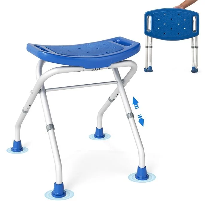Reguliuojamo aukščio dušo kėdė su neslystančiomis guminėmis kojelėmis (Mėlyna)