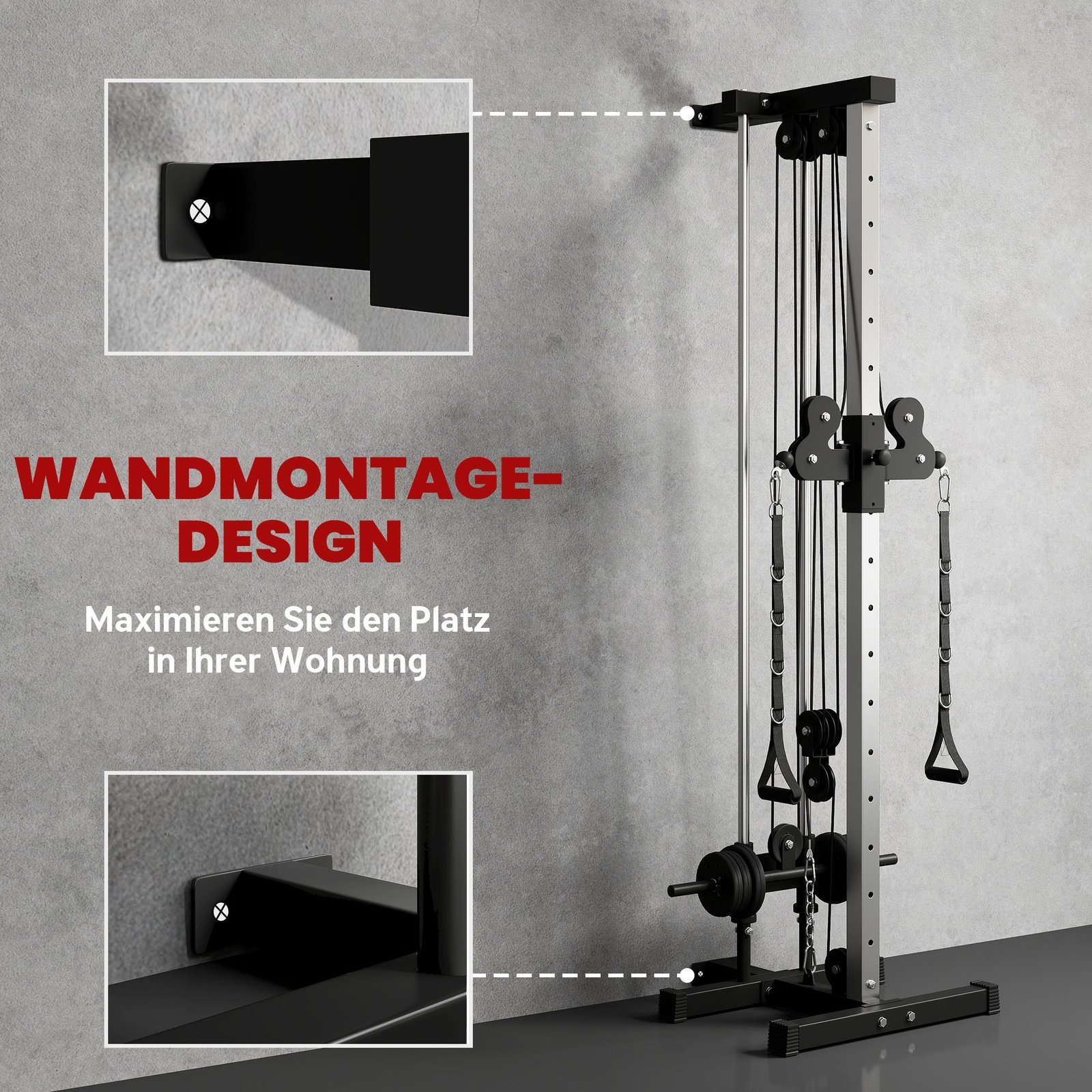 ✔ Tvirtinamas prie sienos viršuje ir apačioje, užtikrinantis papildomą atramą ir stabilumą