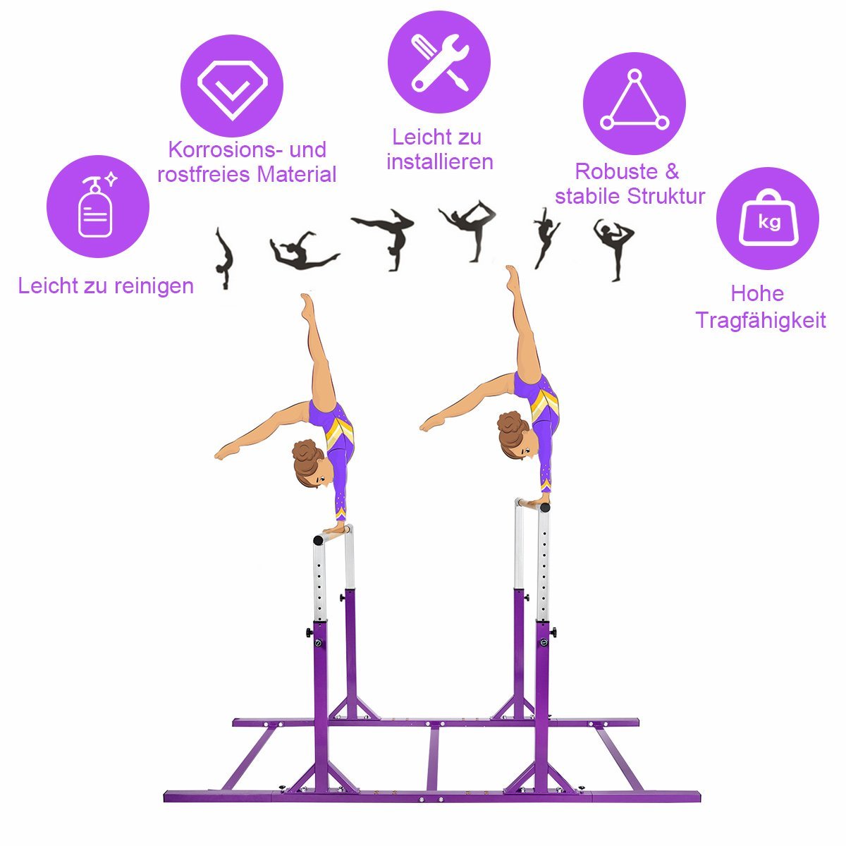 Reguliuojamo aukščio gimnastikos treniruoklis (Violetinė)