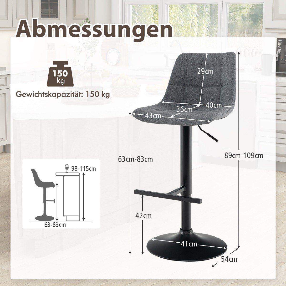 - Bendri matmenys: 43 x 54 x 89-109 cm (I x P x A)