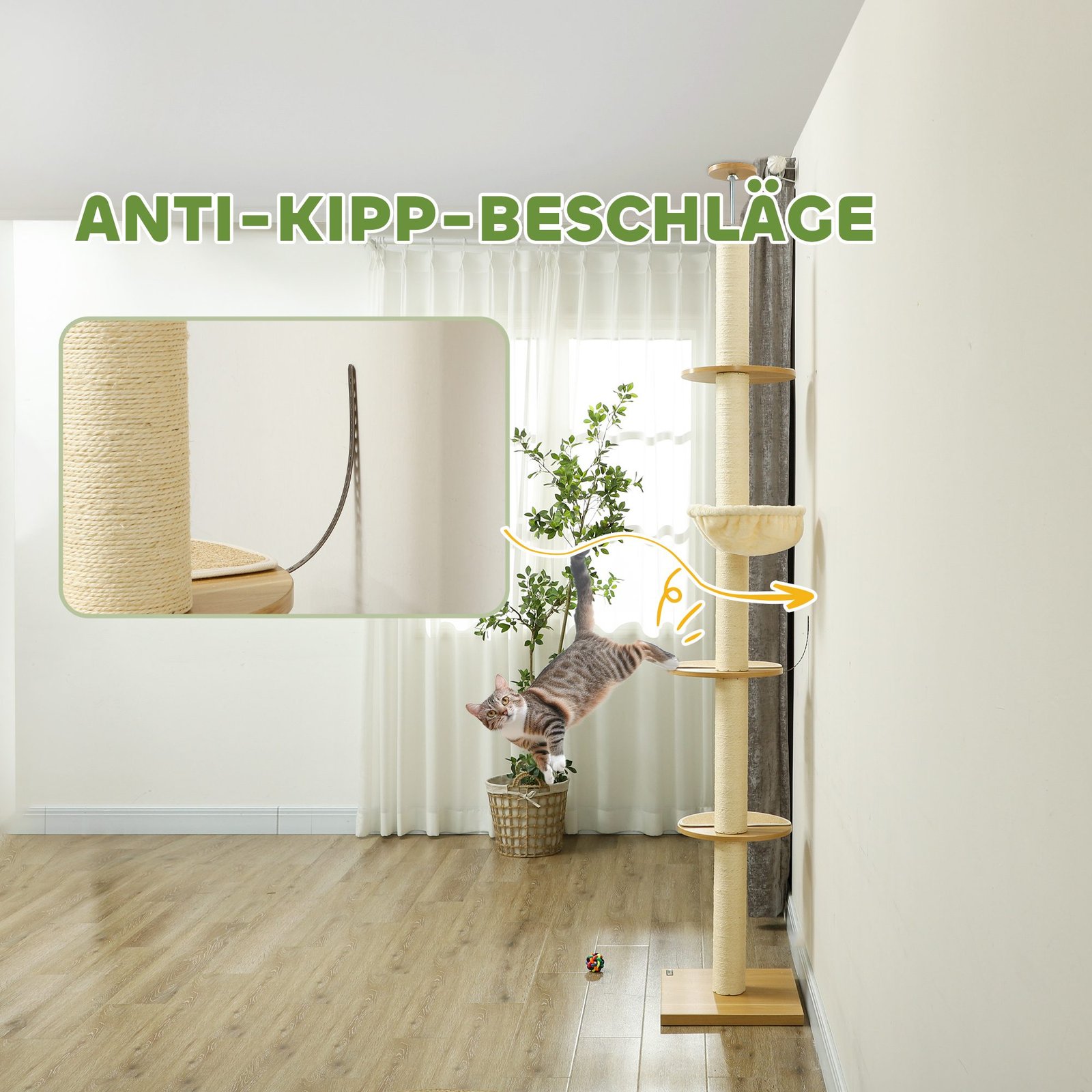 Suteikite savo pūkuotam draugui rojų, kurio jis nusipelnė! Mūsų iki lubų siekiantis draskyklė siūlo kelias platformas poilsiui ir kaitinimuisi saulėje, idealiai tinkančias aktyvioms kačių šeimoms. Erdvus lubomis tvirtinamos draskyklės paviršius leidžia jūsų augintiniams išsitiesti ir pagaląsti nagus. Jūsų katės pamėgs šį kačių medį ir puikiai praleis laiką. Sukurkite nuotykių ir atsipalaidavimo kupinus namus savo murkiančioms draugėms!