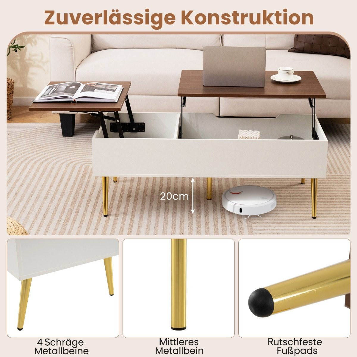 Reguliuojamo aukščio kavos staliukas su atidaromu stalviršiu ir dviem paslėptomis daiktadėžėmis (Riešuto)