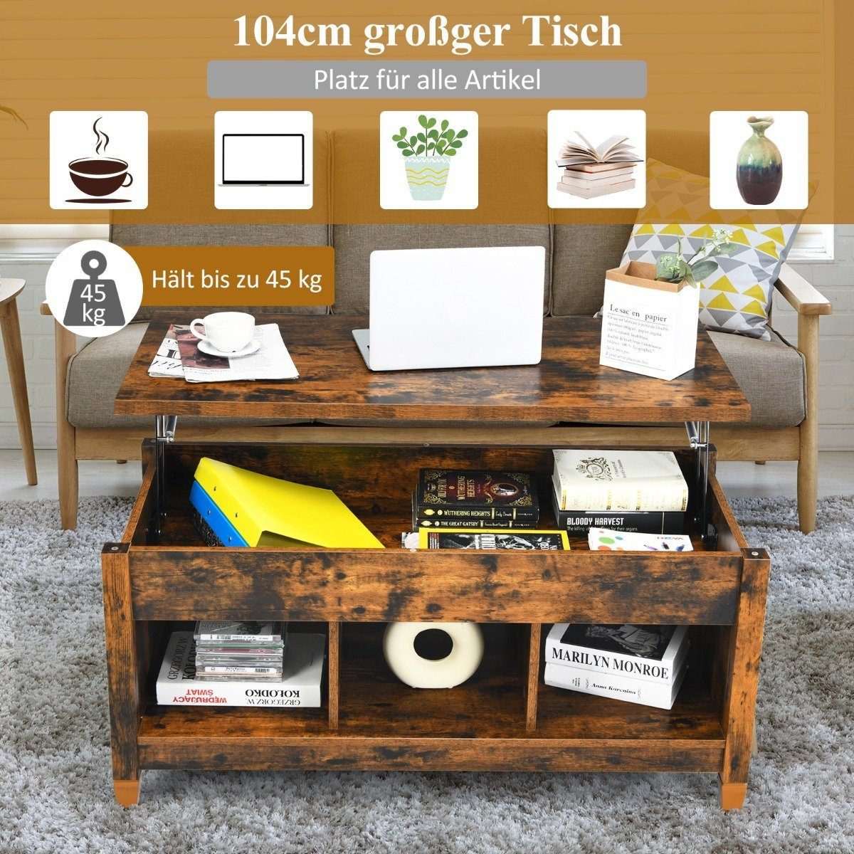 Atraskite stiliaus ir funkcionalumo derinį su šiuo reguliuojamo aukščio kavos staliuku. Jis leis Jums patogiai dirbti arba mėgautis maistu, o paslėpta talpa suteiks papildomos vietos smulkiems daiktams. Staliukas pagamintas iš aukštos kokybės drožlių plokštės ir masyvmedžio kojelių, garantuojant ilgaamžiškumą.
