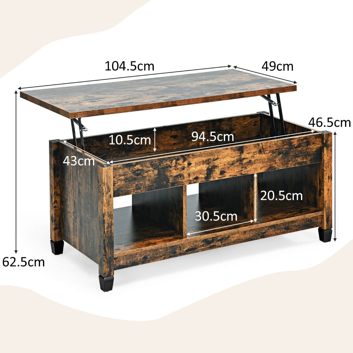 - Matmenys: 104,5 x 49 x 48-62,5 cm (Ilgis x Plotis x Aukštis)