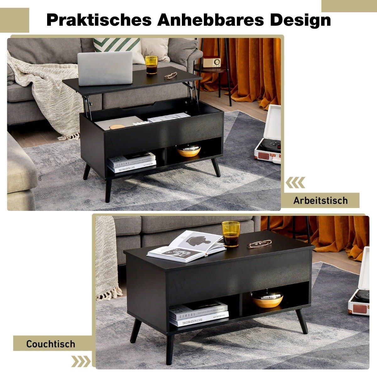Reguliuojamo aukščio kavos staliukas su pakeliama plokšte ir dviem atviromis lentynėlėmis (Juoda)