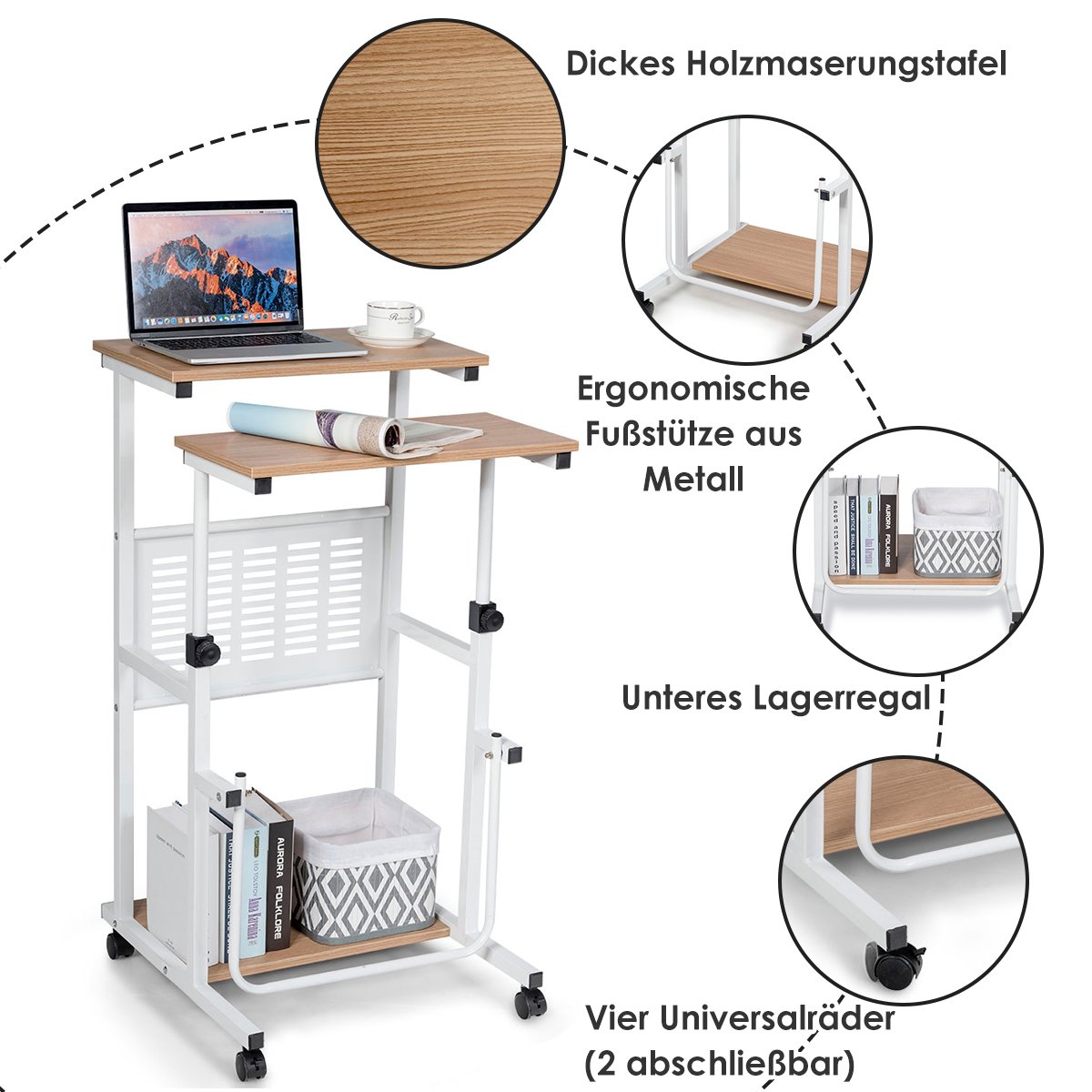 Reguliuojamo aukščio kompiuterio stalas su ratukais (Natūrali)