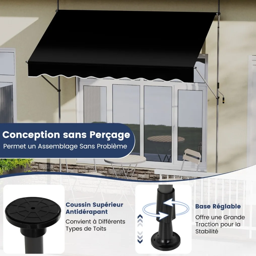 Pridėkite elegancijos ir saulės apsaugos savo lauko erdvei su šia reguliuojamo aukščio markize. Pagaminta iš aukštos kokybės, vandeniui ir UV spinduliams atsparaus poliesterio su PU danga, ji užtikrina ilgalaikę apsaugą ir ilgaamžiškumą. Patogi rankenėlė leidžia lengvai reguliuoti kampą ir aukštį, pritaikant markizę pagal jūsų poreikius.