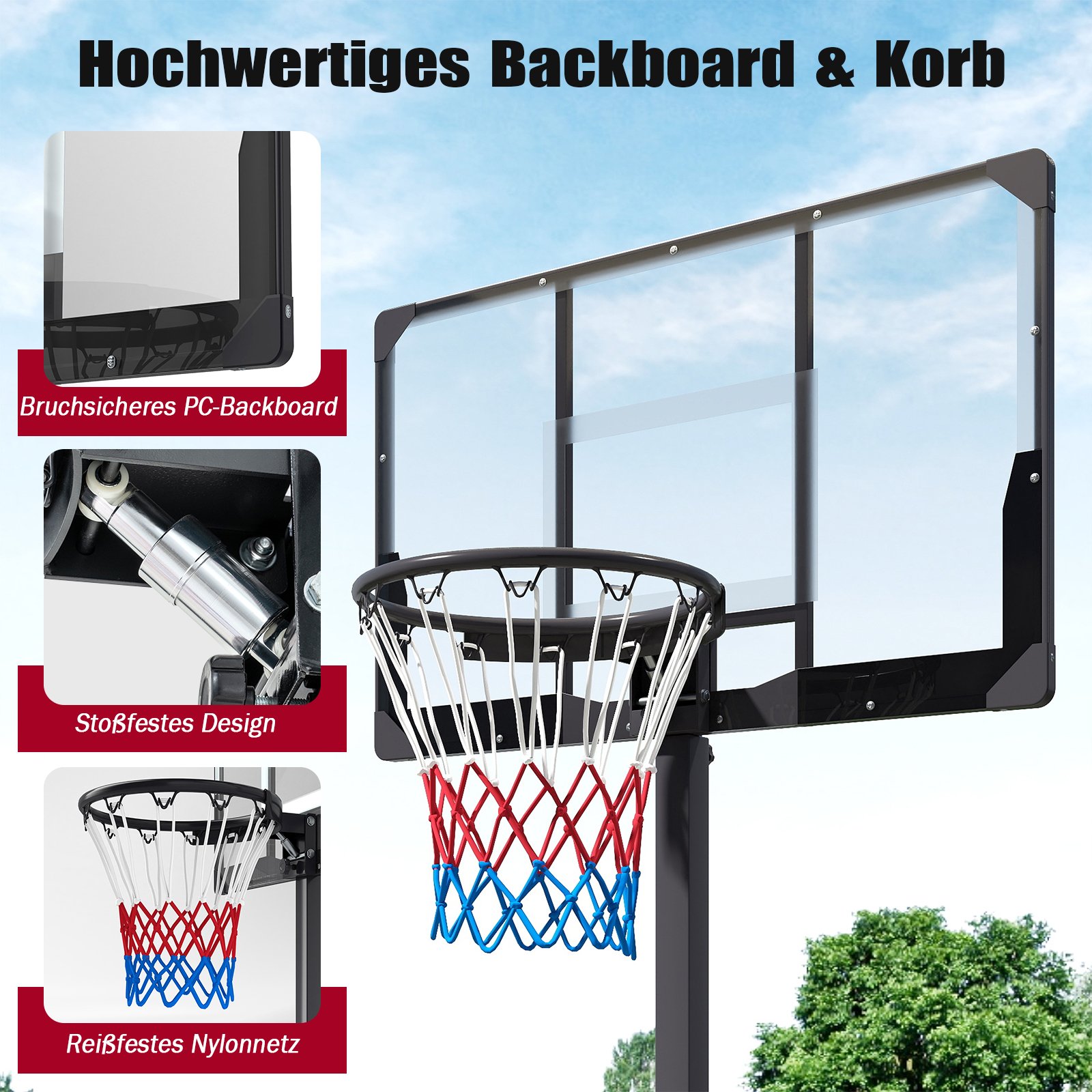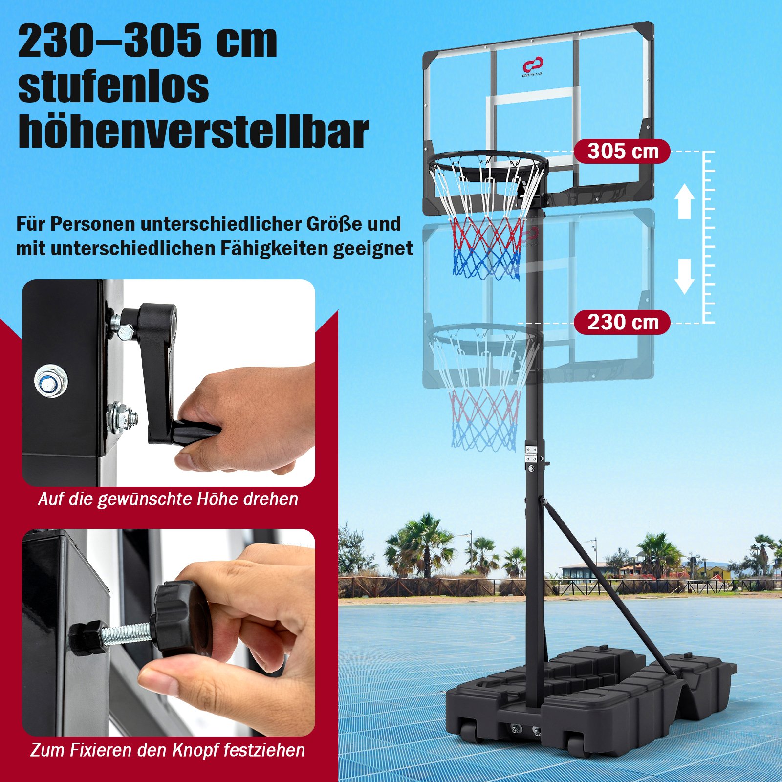 Ar norite patobulinti savo krepšinio įgūdžius? Mūsų krepšinio stovas yra idealus treniruočių partneris! Jo aukštis reguliuojamas nuo 230 iki 305 cm, todėl puikiai tinka įvairaus amžiaus ir ūgio žaidėjams. Stabilus ir užpildomas pagrindas užtikrina maksimalų saugumą net ir intensyvių žaidimų metu, o integruoti ratukai leidžia jį lengvai perstumti į norimą vietą.