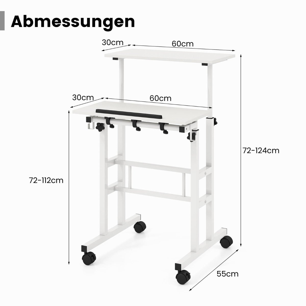 - Viršutinė stalviršio plokštė: 60 x 30 x 72-124 cm (Ilgis x Plotis x Aukštis)