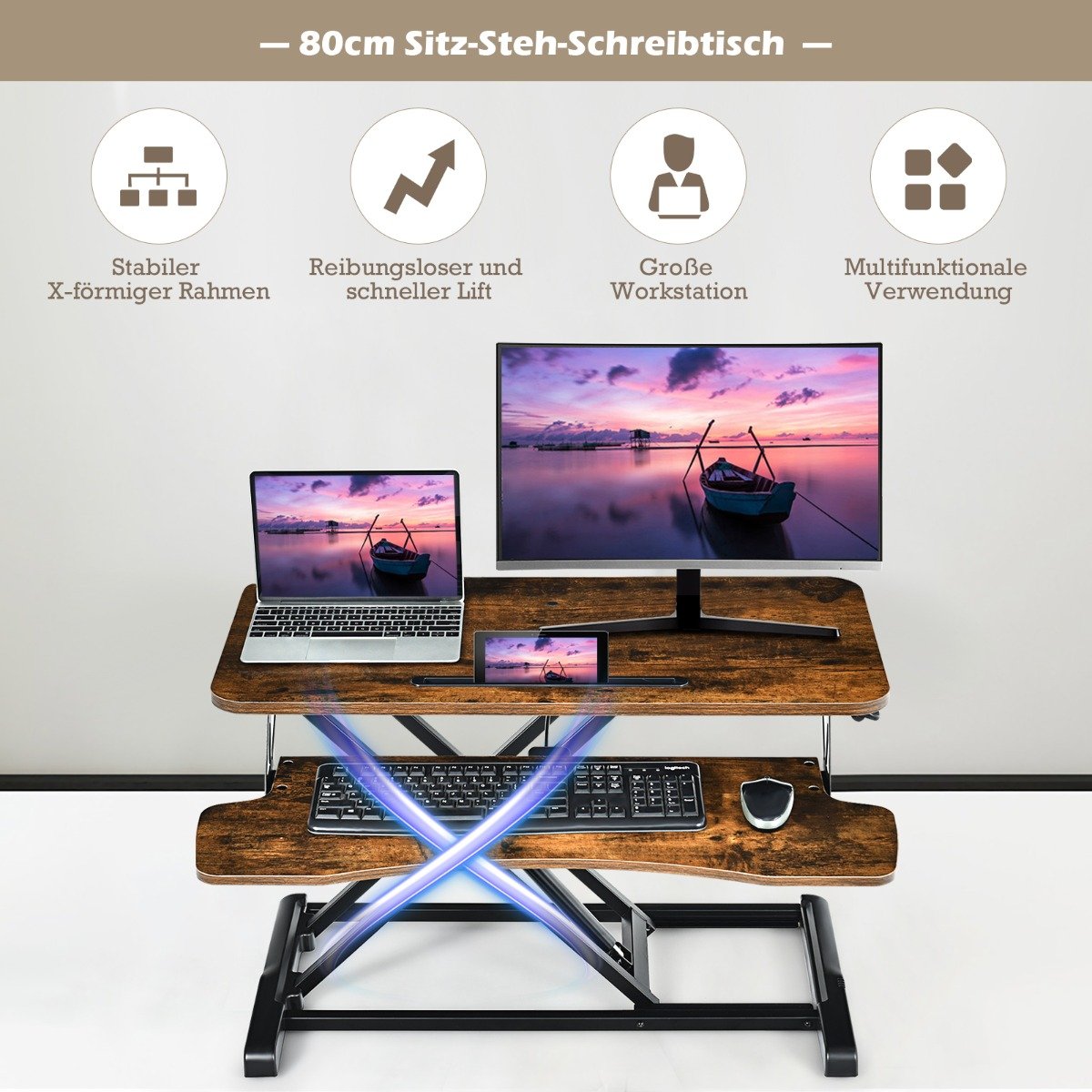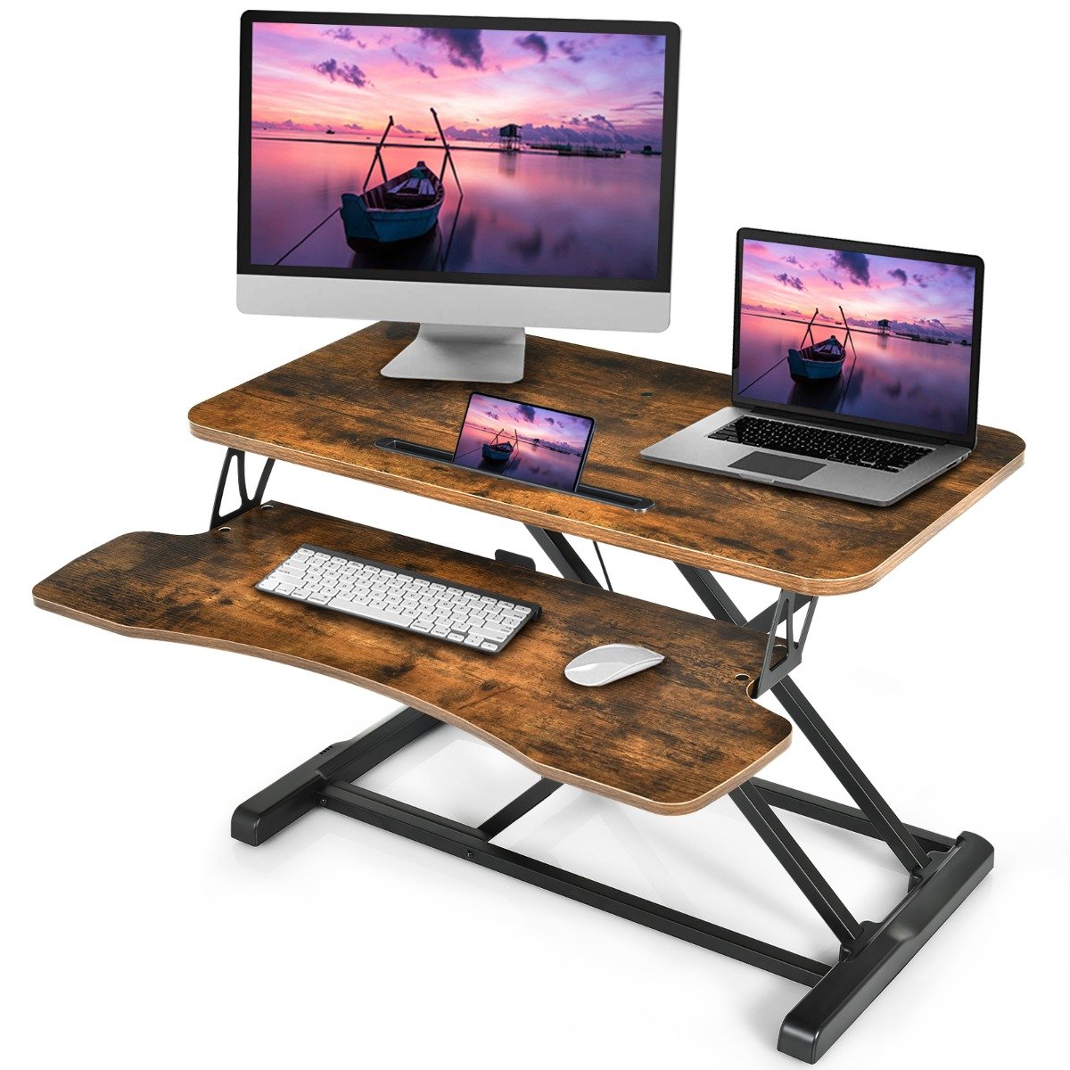 Lengvai keiskite savo darbo poziciją tarp sėdėjimo ir stovėjimo su šiuo stilingu ir funkcionaliu stalo stoveliu. Sukurtas skatinti sveikesnį darbo būdą, šis stalo priedas leis jums dinamiškiau dirbti ir pagerins jūsų bendrą savijautą.