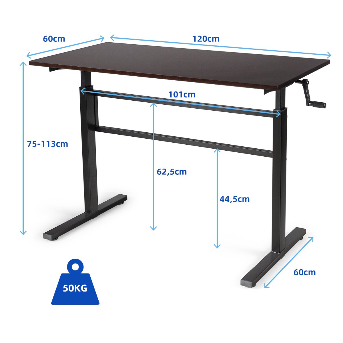 - Matmenys: 120 x 60 x 75-113 cm (Ilgis x Plotis x Aukštis)