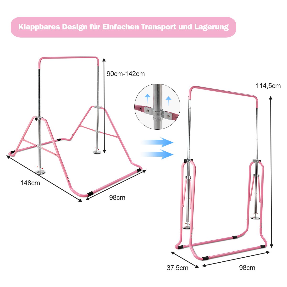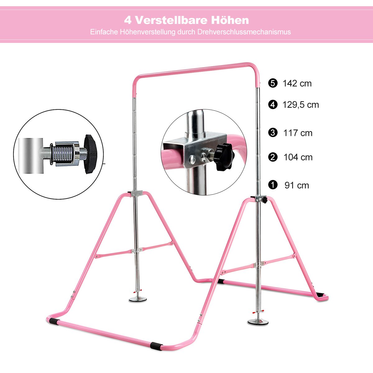 Reguliuojamo aukščio sulankstomas gimnastikos skersinis vaikams (Rožinė)