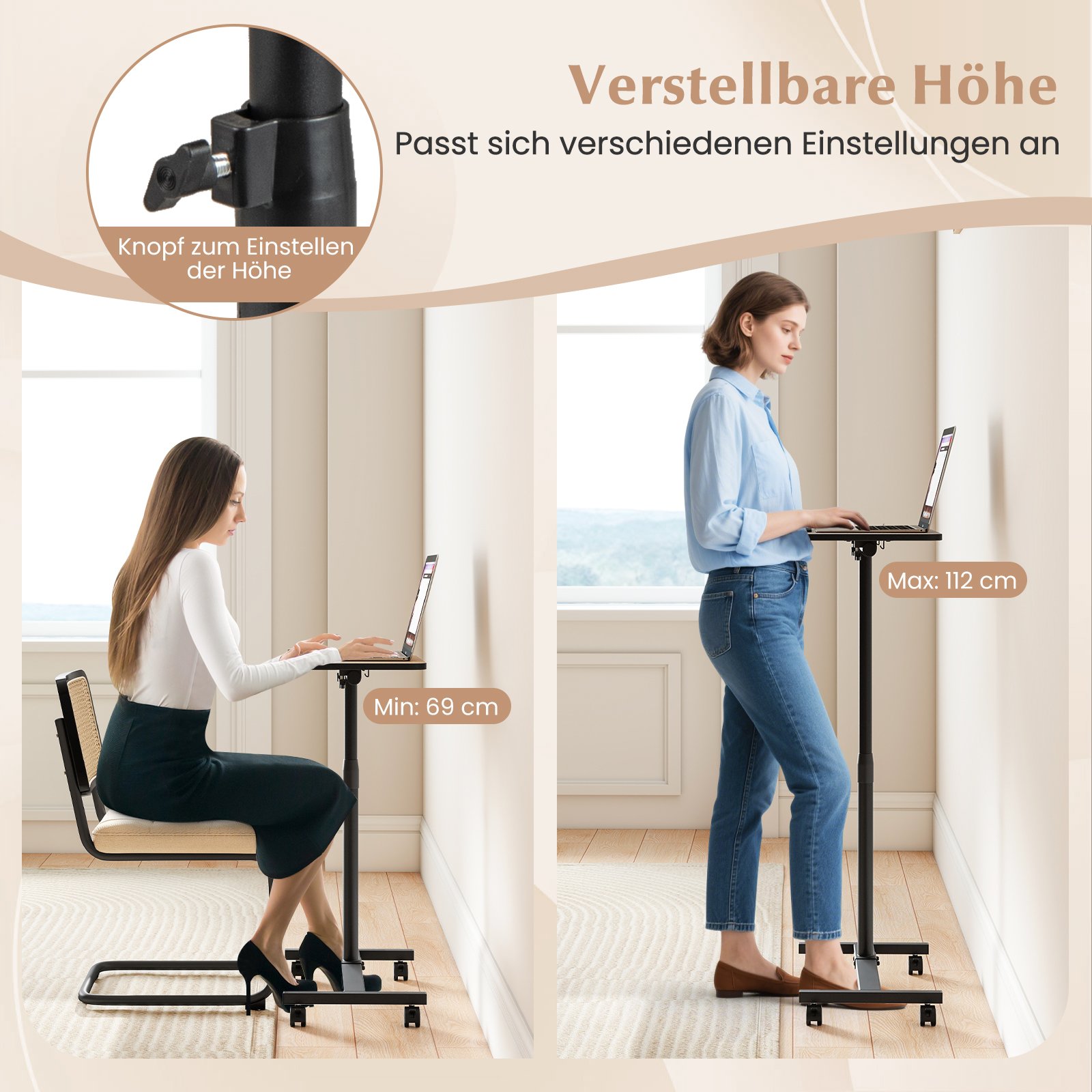 - Lankstus aukščio reguliavimas: Staliukas lengvai pritaikomas prie įvairių situacijų, leidžiantis tiksliai reguliuoti aukštį nuo 69 cm iki 112 cm.