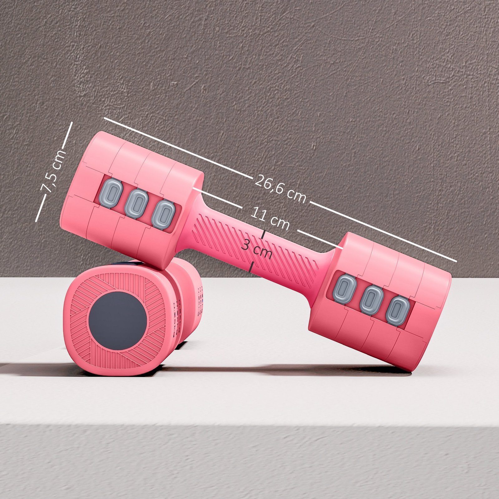 ✔ 2,5 kg vienai hanteliui pakeičia keturias, lengvai reguliuojama nuo 1 kg iki 2,5 kg