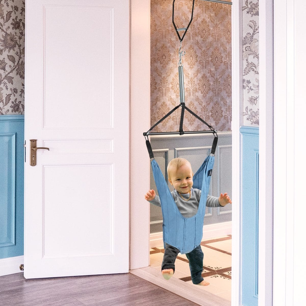Reguliuojamos vaikiškos durų pakabinamos supynės-sėdynė (Mėlyna)