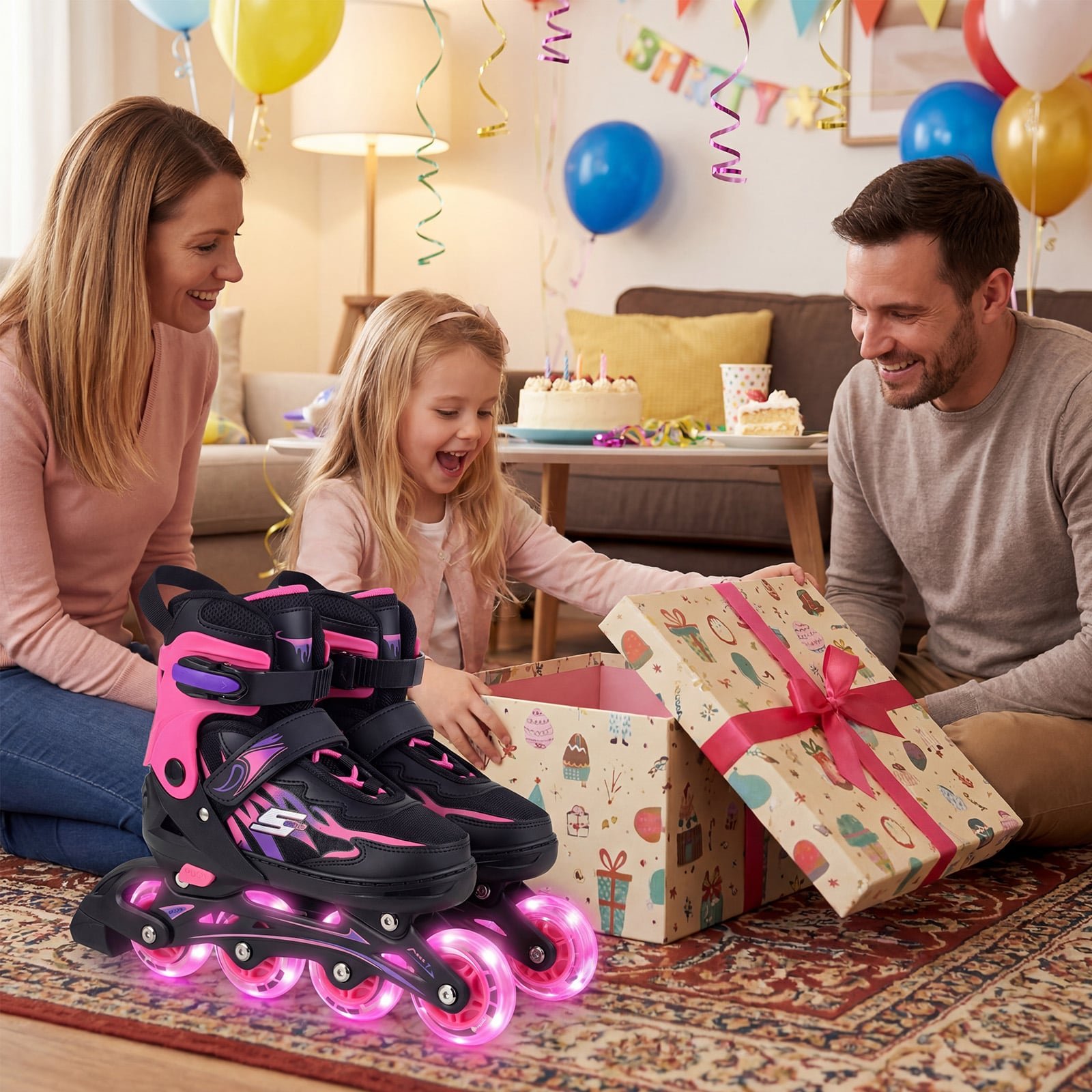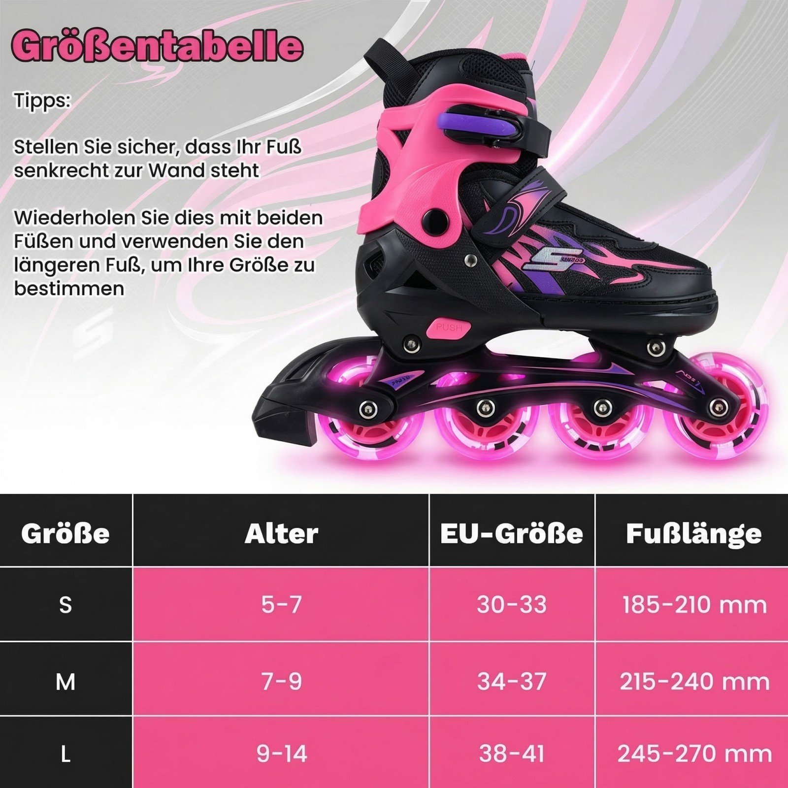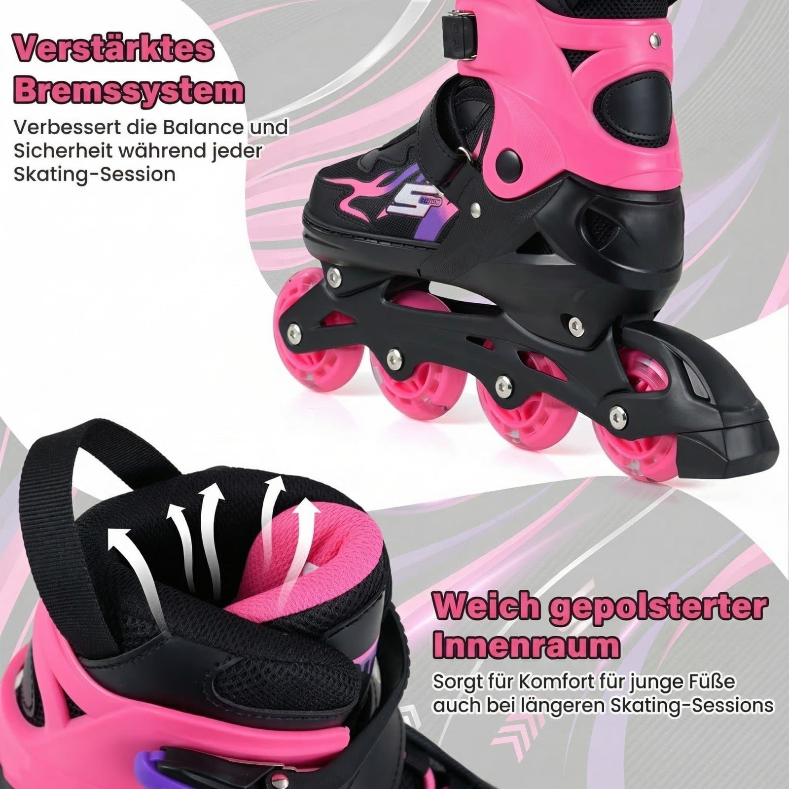 Šie aukščiausios kokybės vaikiški riedučiai sukurti maksimaliam komfortui ir saugumui, kad vaikas jais džiaugtųsi ilgą laiką. Jie pasižymi keturių dydžių reguliavimu, leidžiančiu riedučiams augti kartu su vaiku, bei judesio aktyvuojamais šviečiančiais ratais, kurie kiekvieną pasivažinėjimą paverčia įspūdinga patirtimi. Dėl patikimos ABEC-7 guolių sistemos ir patobulintų stabdžių, šie riedučiai idealiai tinka pradedantiesiems, padėdami ugdyti pusiausvyrą ir koordinaciją.