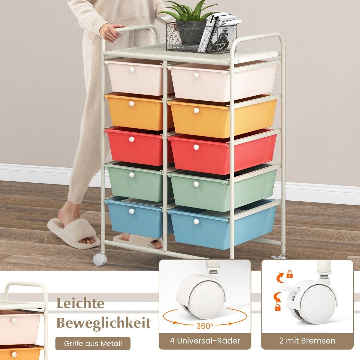 Riedantis dešimties stalčių vežimėlis (Spalvotas)