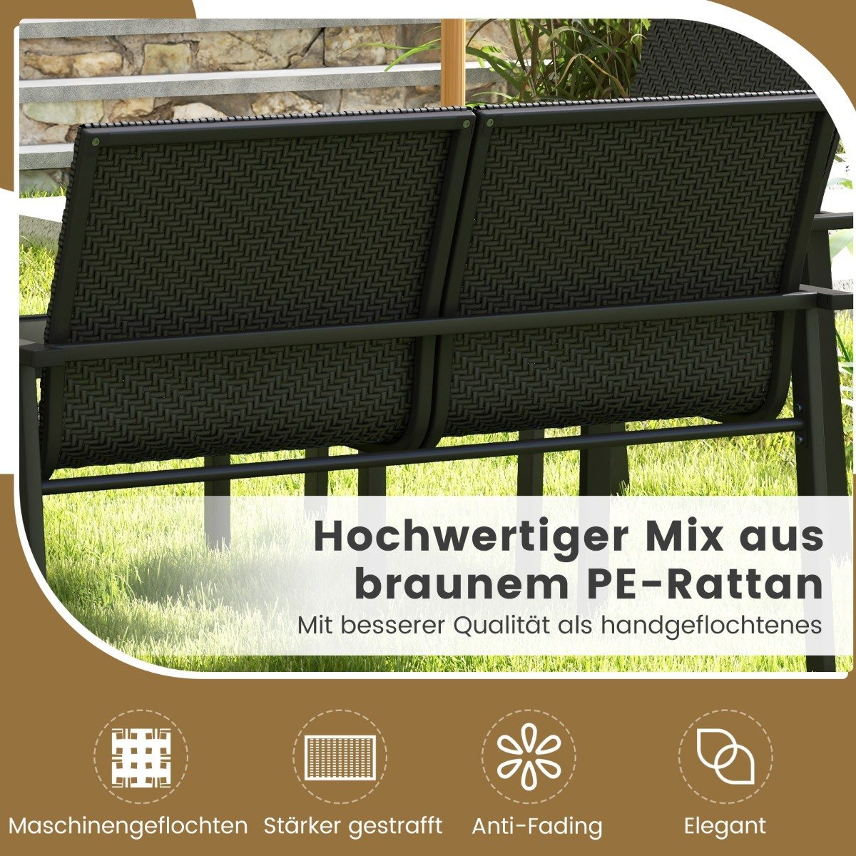 - Pagaminta iš aukštos kokybės, į UV spindulius atsparaus PE ratano.