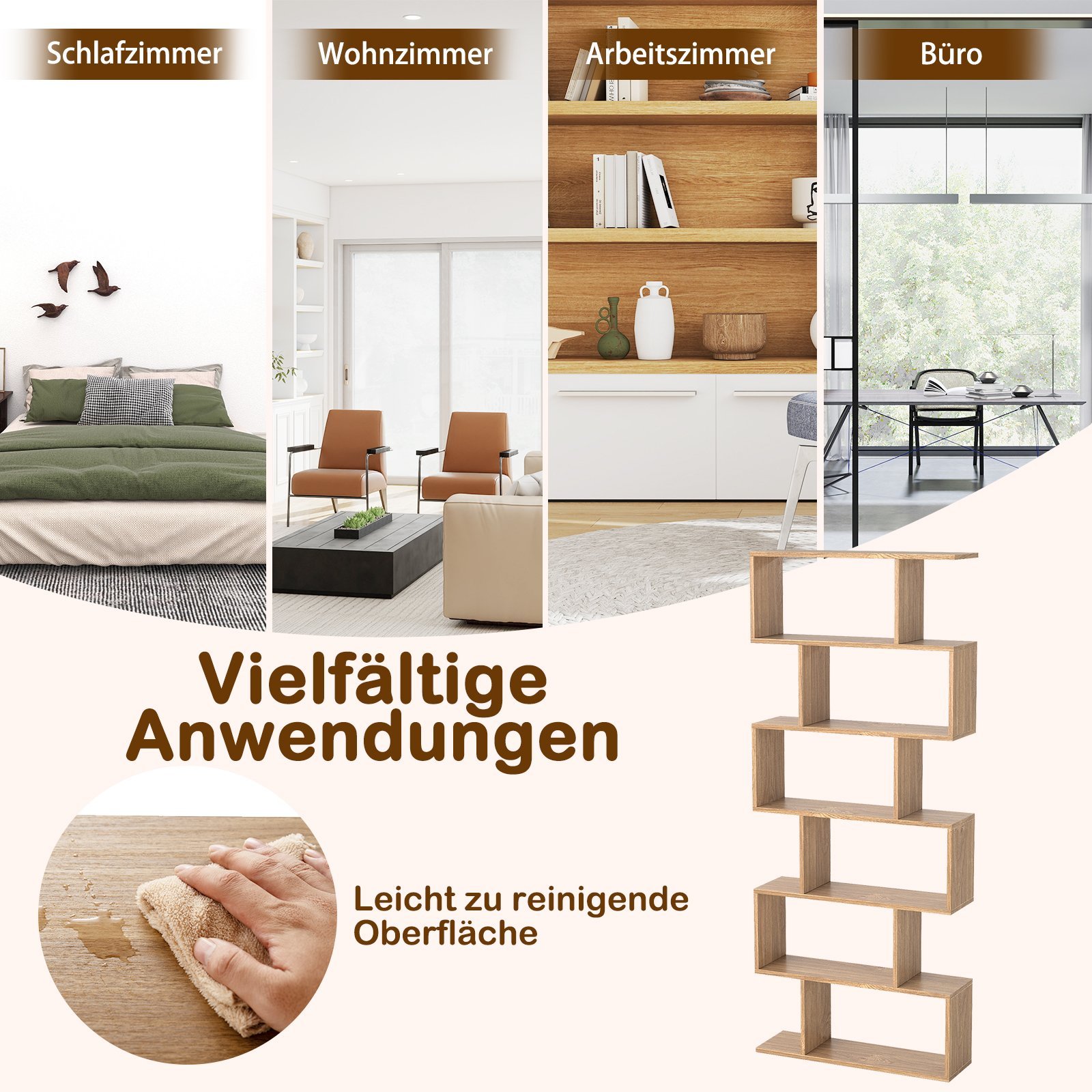 S formos 6 lentynų stovinanti lentyna erdvės daliklis (Natūrali)
