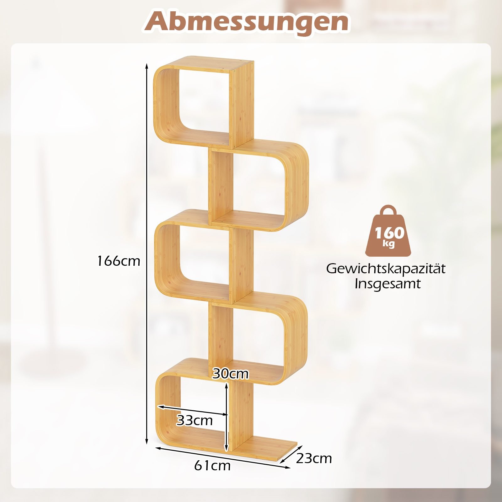 S formos penkių pakopų bambukinė knygų lentyna (Natūrali)