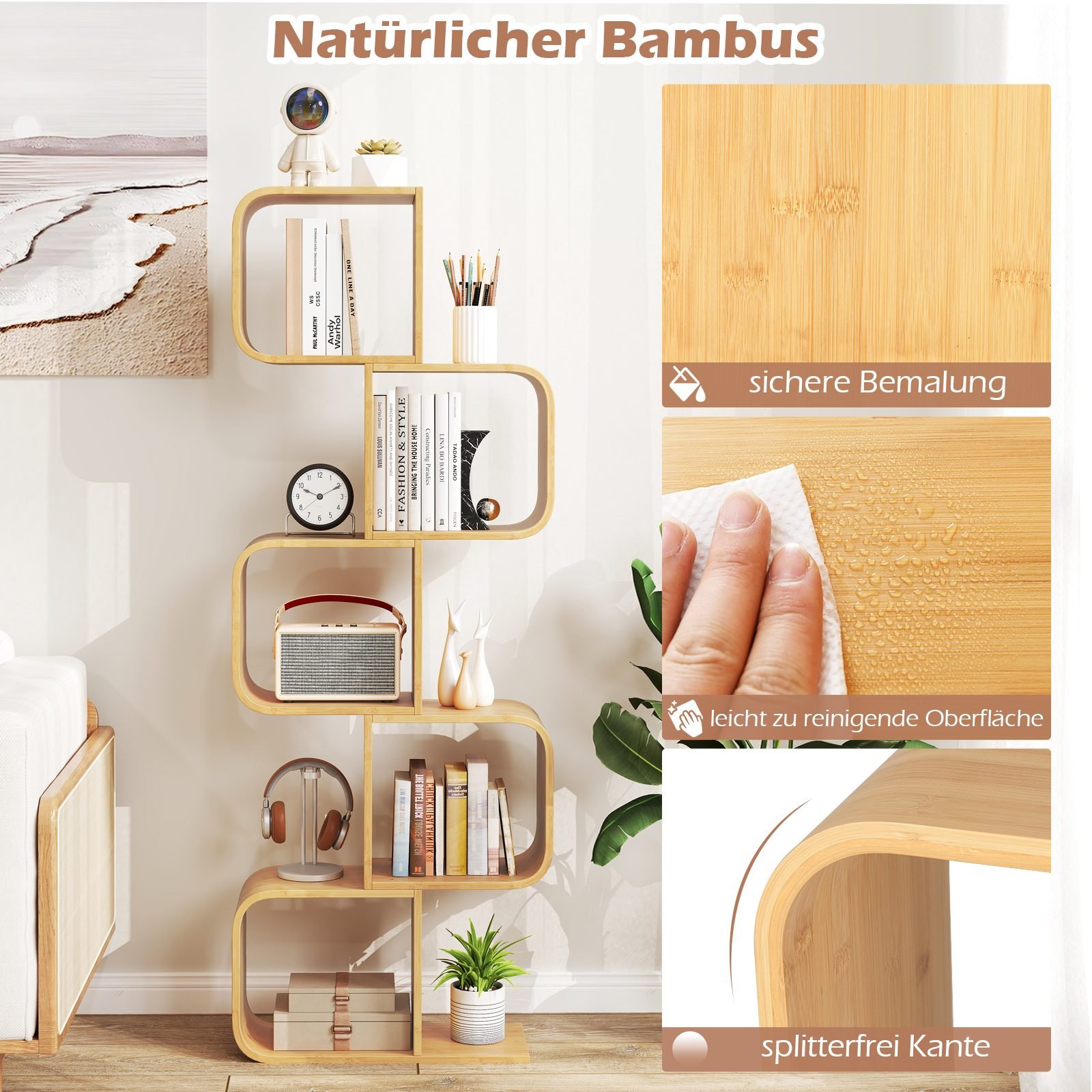 Stilingai ir tvariai sutvarkykite savo erdvę su šia unikalia S formos bambuko knygų lentyna! Tai ne tik praktiškas, bet ir estetiškas baldas, puikiai papildysiantis bet kurį Jūsų kambarį.