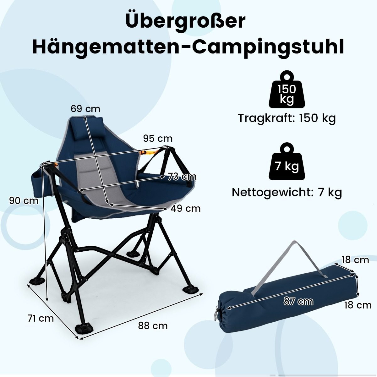 Sąlyginis lauko krėslas su reguliuojama atlošo padėtimi ir puodelių laikikliu (Mėlyna)