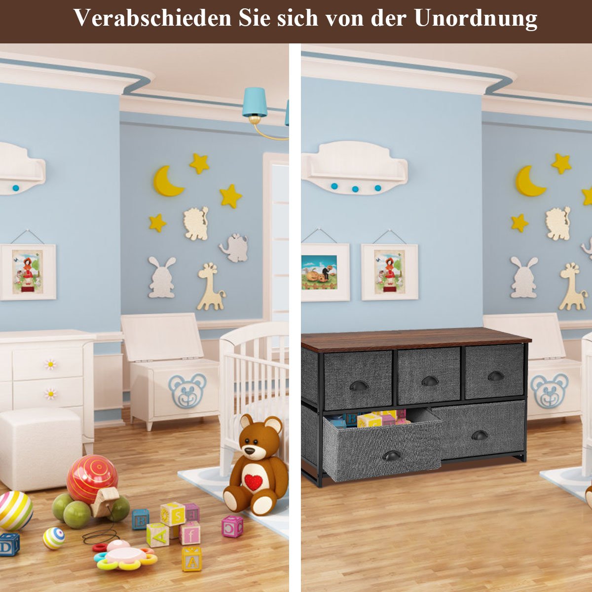 - 5 talpūs, išimami ir sulankstomi tekstiliniai stalčiai.