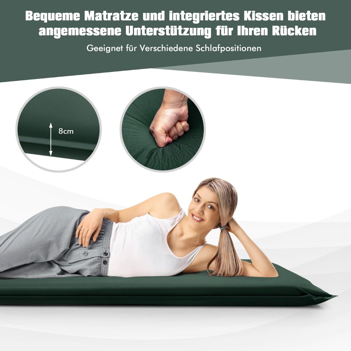 Savaime pripučiamas miegmaišio čiužinys 7.6 cm storio (Žalia)