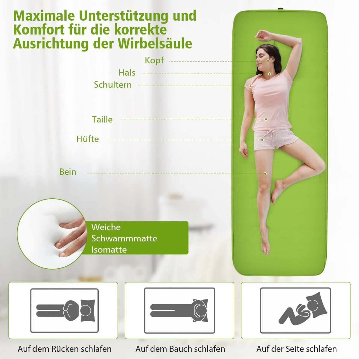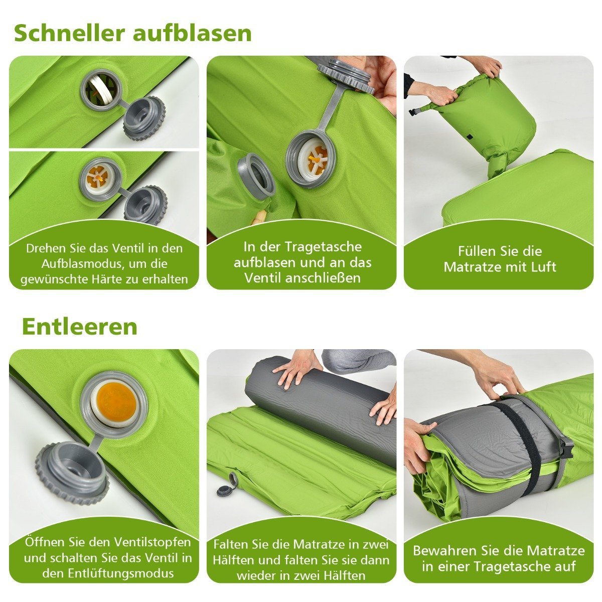 Savaime prisipučiančio miegmaišio čiužinys su dėklu (Žalia)