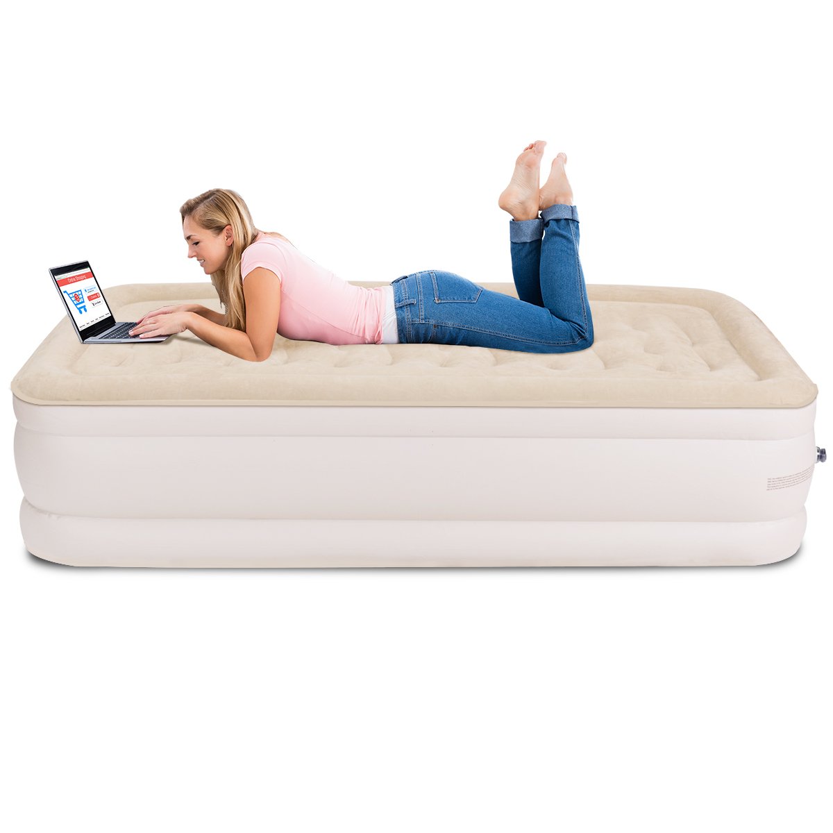 Šis universalus oro čiužinys užtikrina išskirtinį komfortą stovyklaujant, atostogaujant, leidžiant laisvalaikį ar namuose. Jo flokuotas paviršius neleidžia patalynei slysti, taip pagerindamas jūsų miego kokybę. Dėl integruotos elektrinės pompos čiužinys pripučiamas ir išleidžiamas greitai bei be pastangų, o nenaudojamas – lengvai ir kompaktiškai supakuojamas.