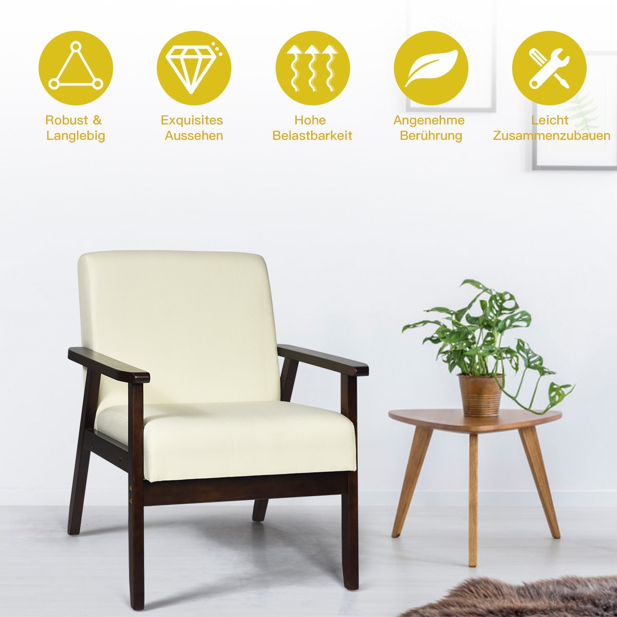 - Tvirtas ir ilgaamžis kaučiuko medienos rėmas.
