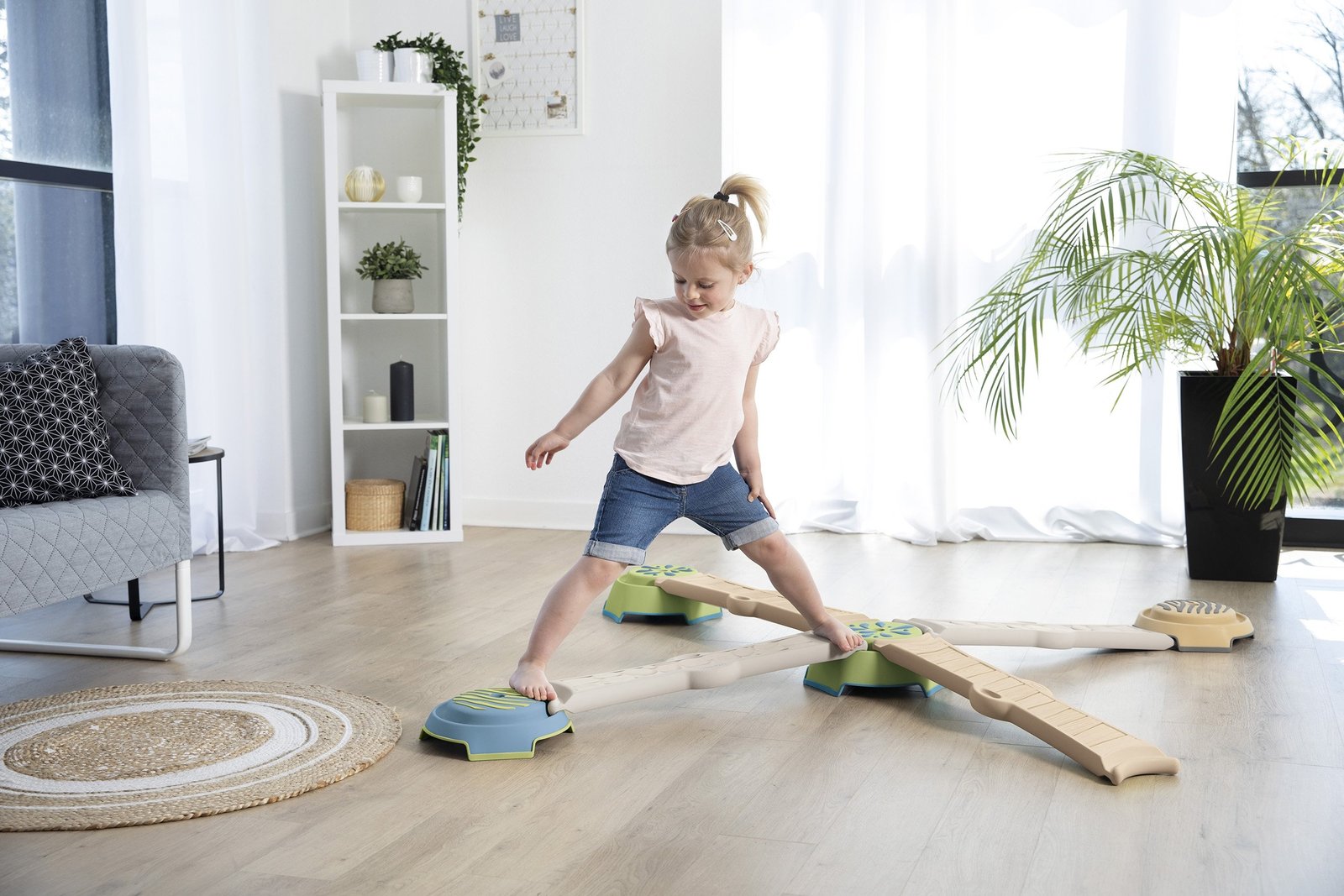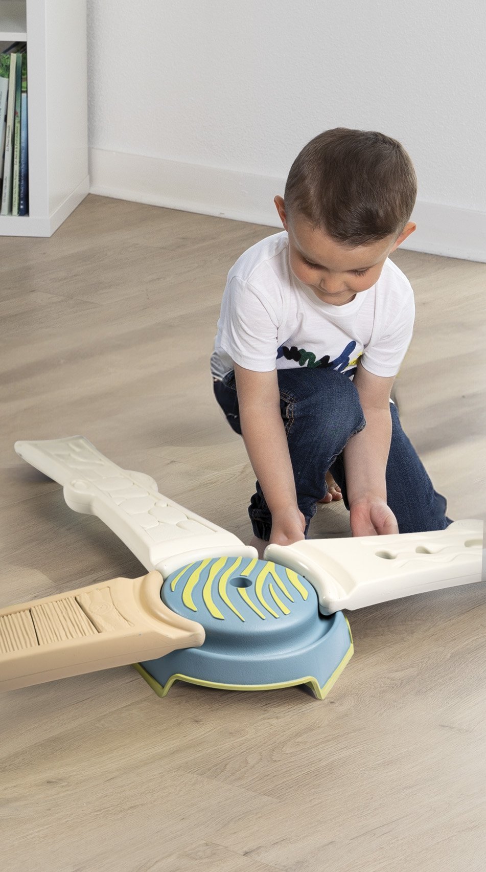 Šis sensorinis balansavimo takelis skirtas vaikams nuo 2 metų. Jis padeda lavinti judesių koordinaciją, pusiausvyrą ir stimuliuoja įvairius sensorinius pojūčius. Šis takelis ne tik lavina motoriką, bet ir suteikia daug džiaugsmo, tinkamas žaisti tiek namuose, tiek lauke.