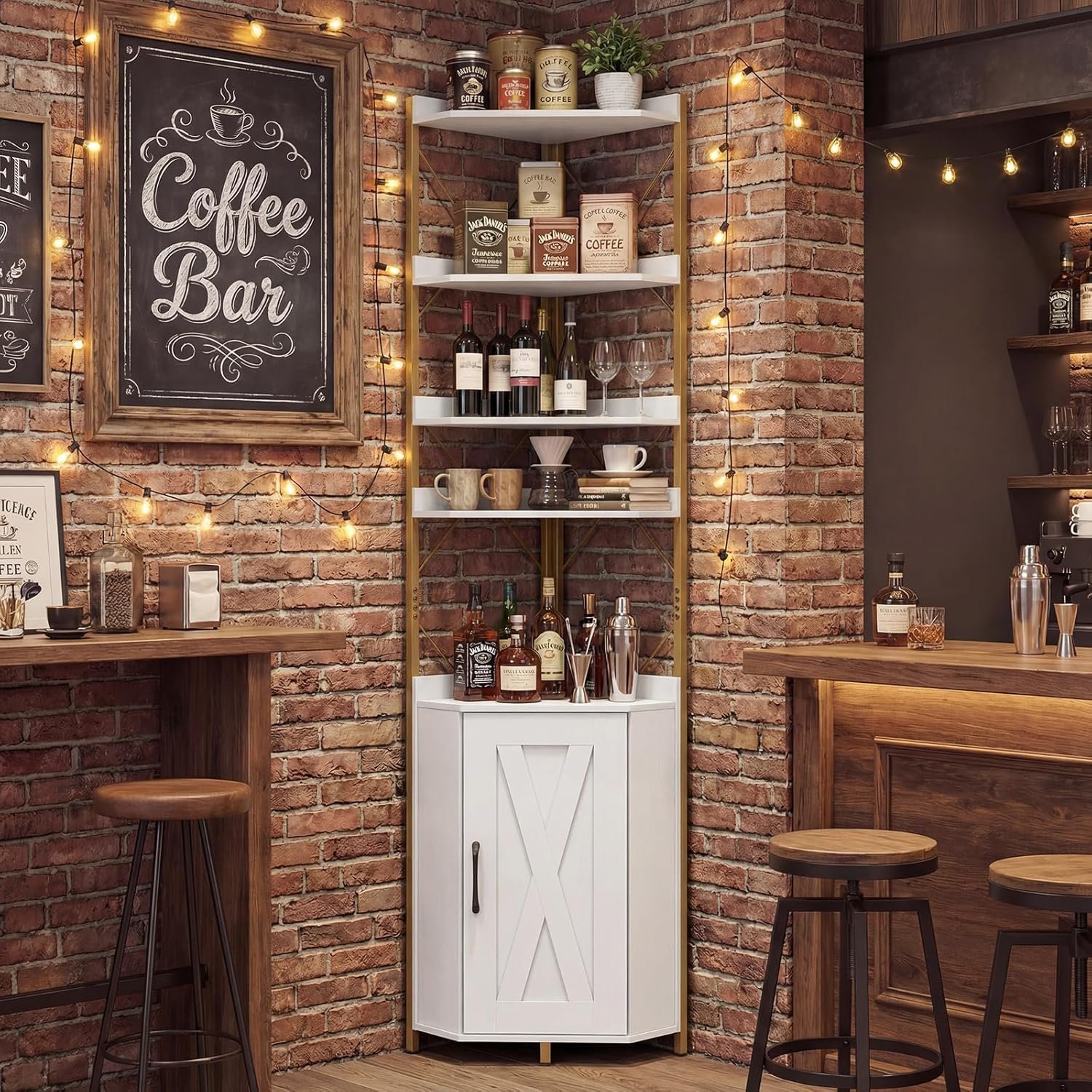 Šešių lygių kampinė lentyna su metaliniu rėmu (Balta)